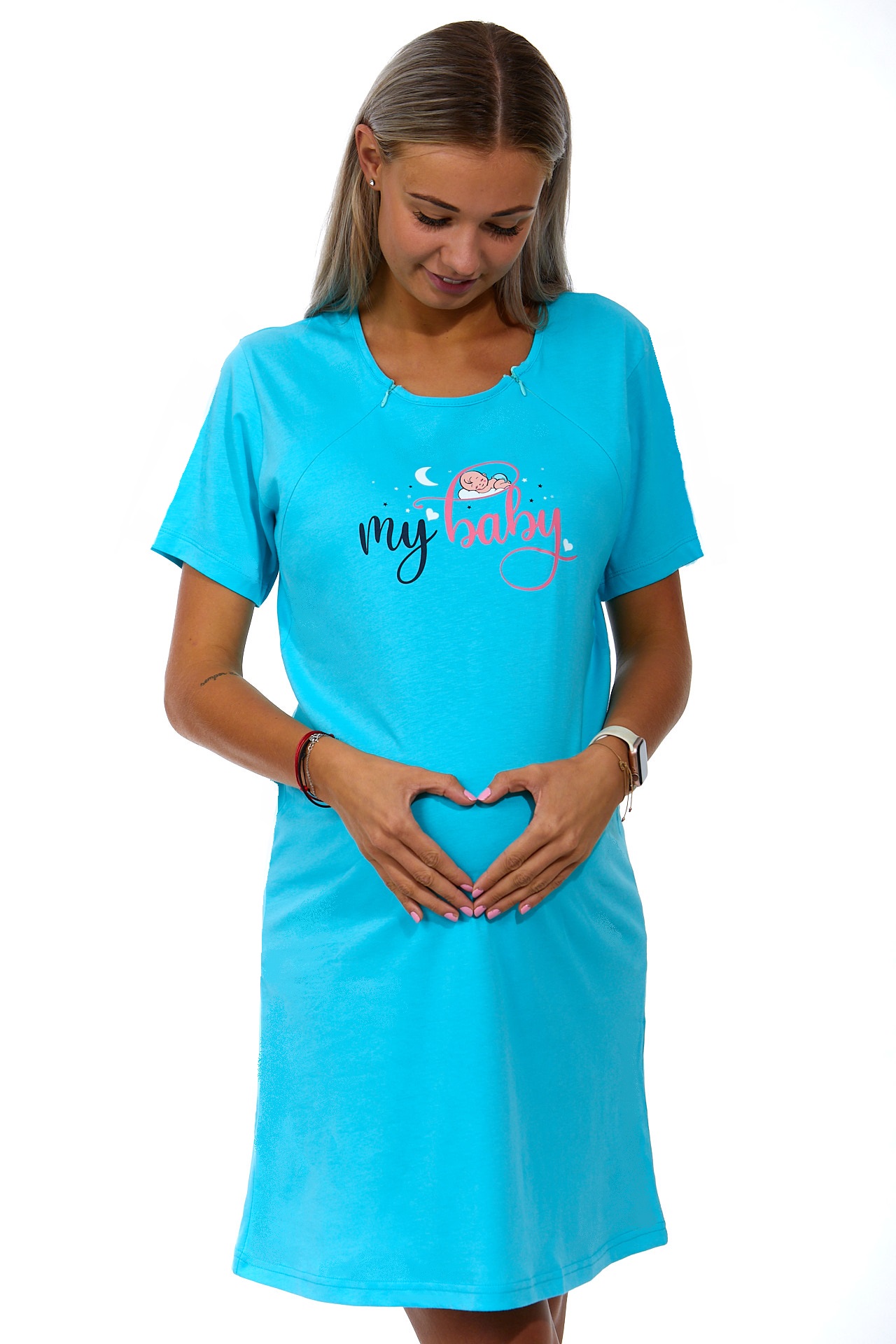 Azurově modrá kojící a těhotenská košilka na zipy MY BABY