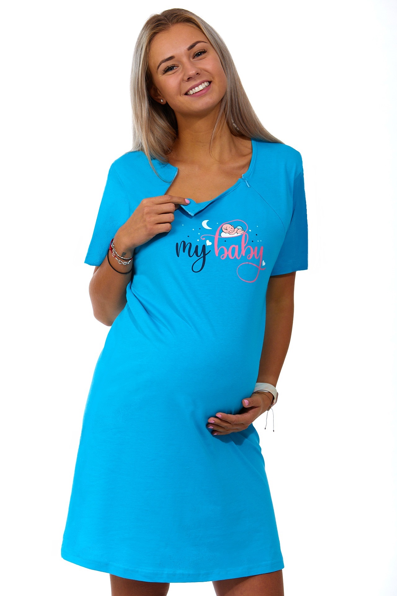 Modrá kojící a těhotenská košilka na zipy, MY BABY