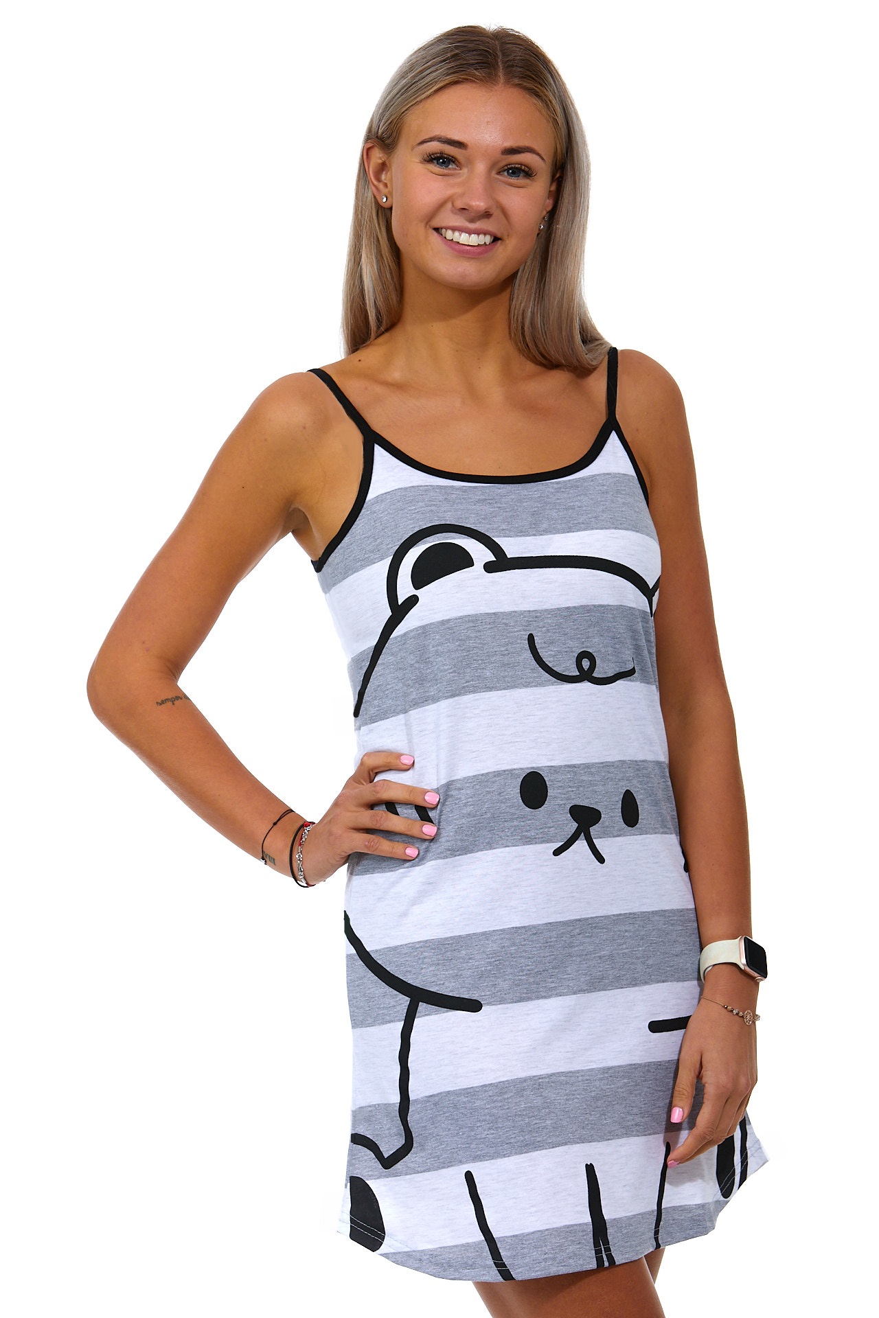 Šedá pruhovaná košilka dámská s tenkými ramínky s kočičkou