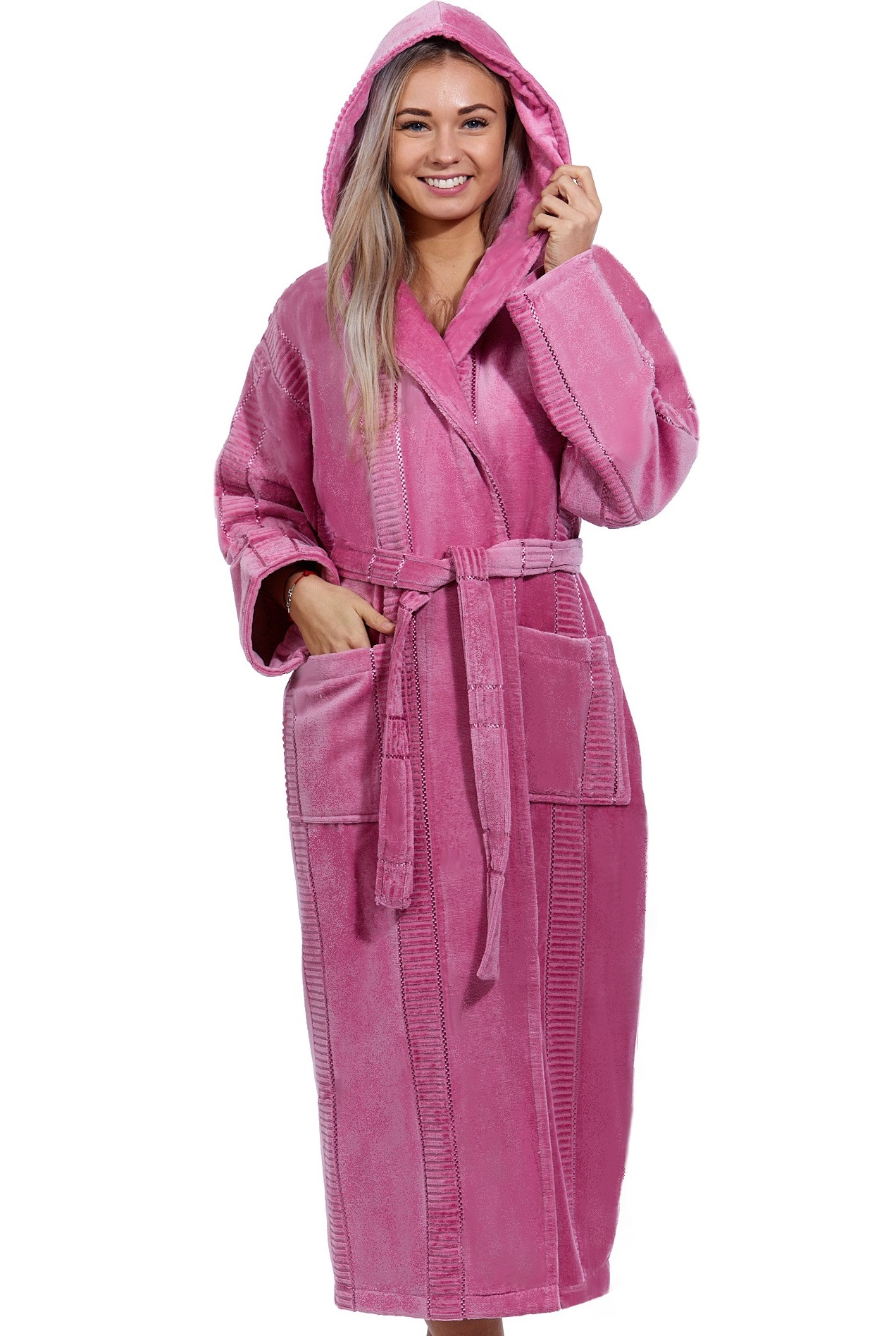 Prémiový dámský župan je velice kvalitní z jemné teplé silné froté 100% bavlny s hlubokou kapucí, který má dvě hluboké kapsy po stranách.