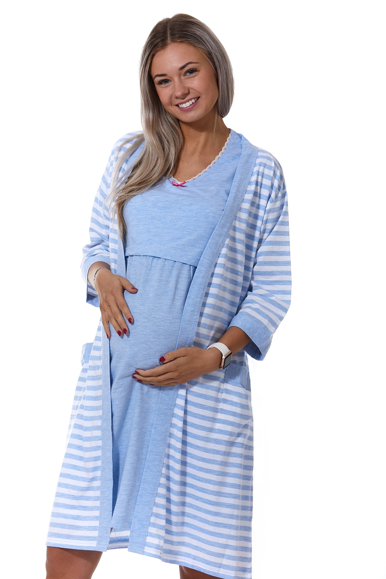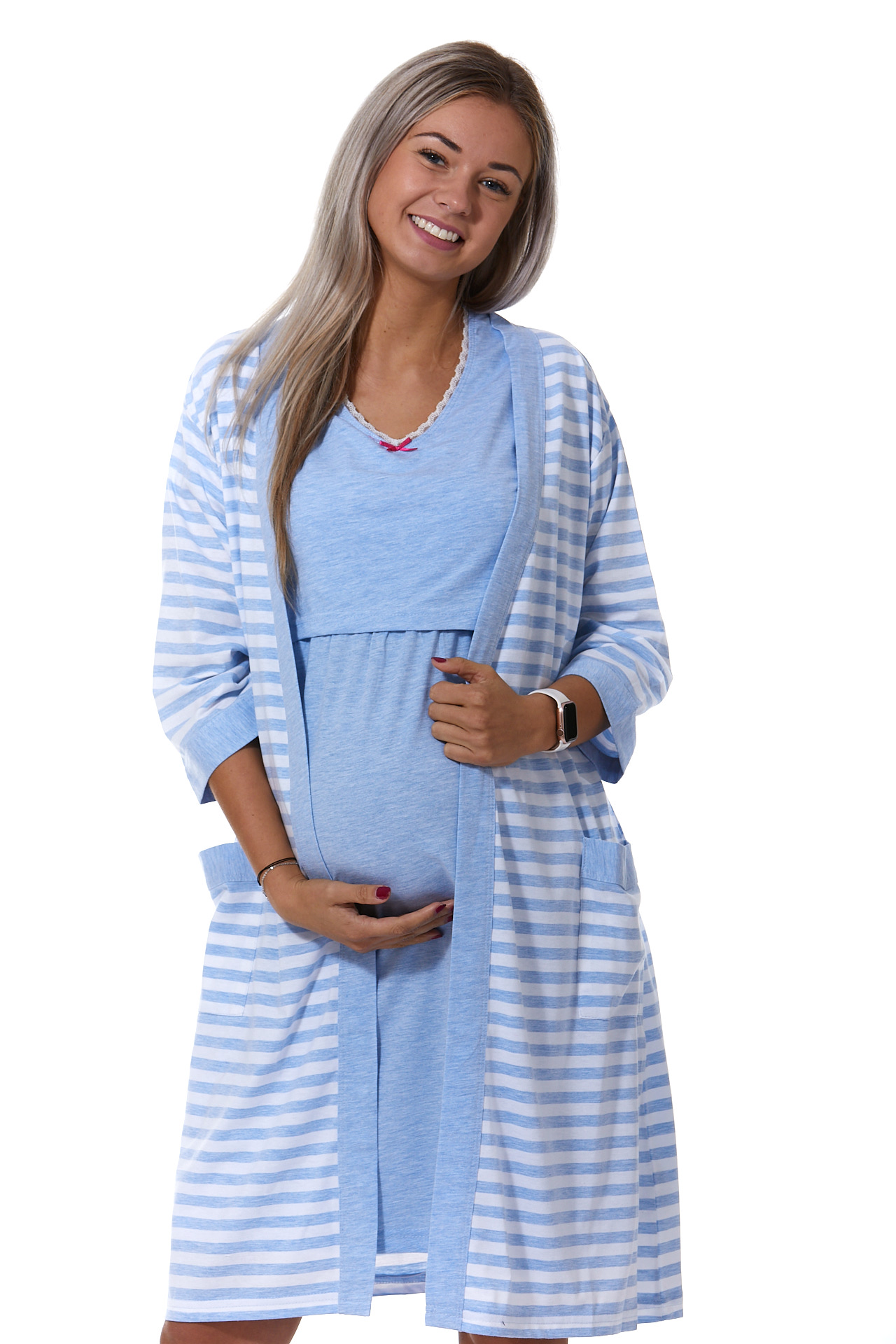 Mateřská košilka s otvory na kojení a župan modrý set 1G0442