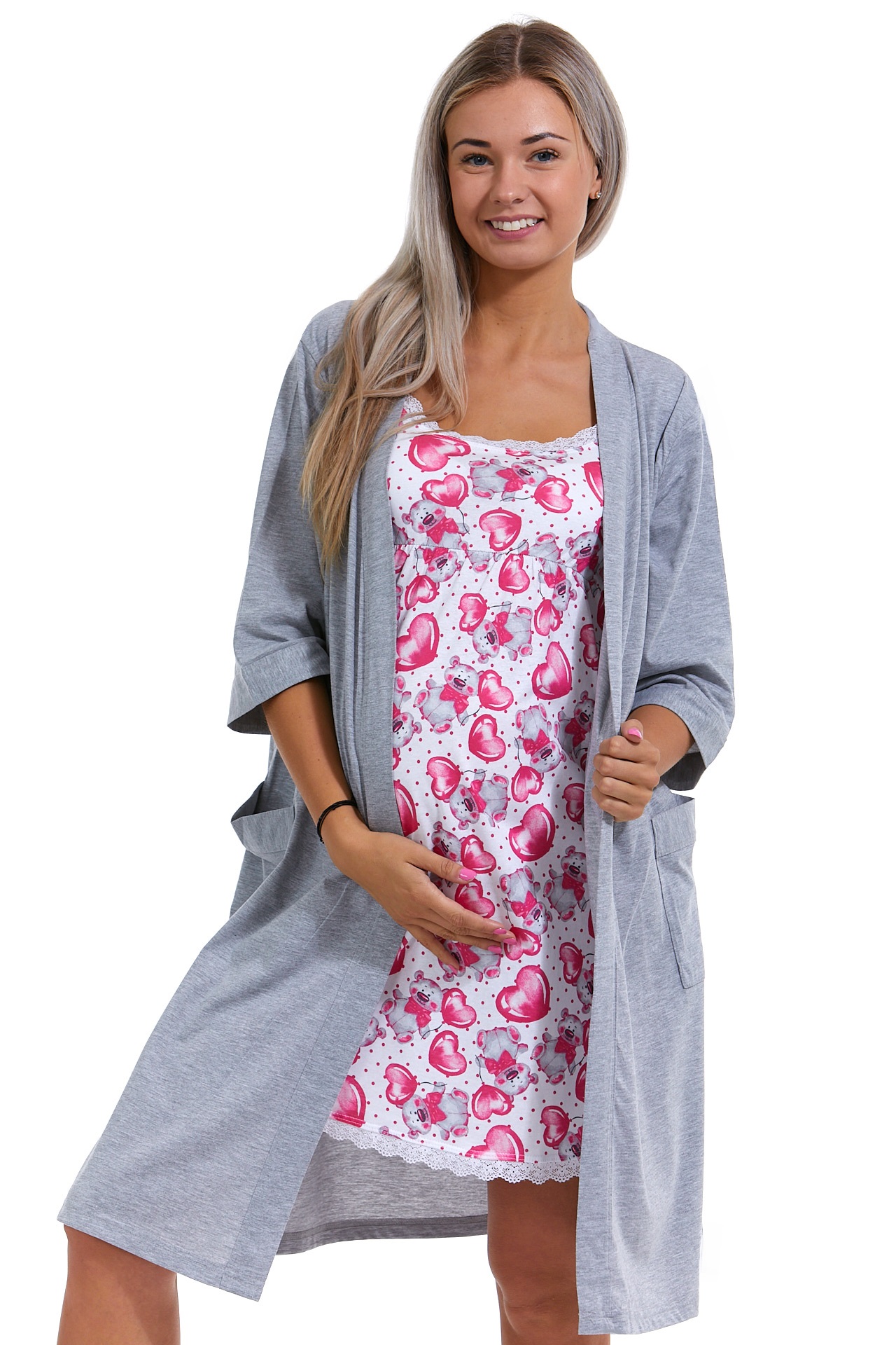 košilka má krásný celovzor srdíček, župan je jednobarevný