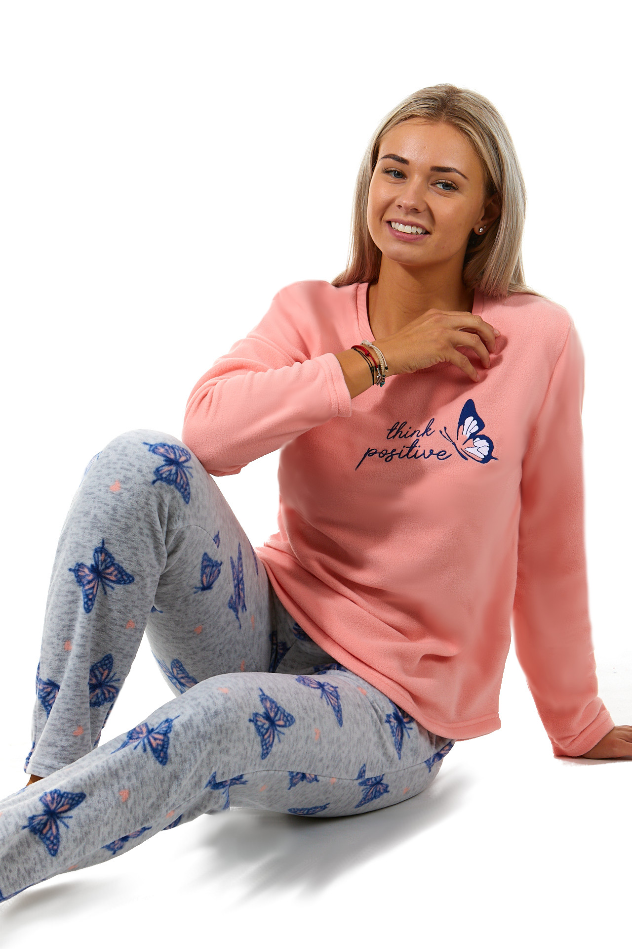 Meruňkové i šedé s modrými motýlky luxusní hřejivé pyžamo pro plnoštíhlé ženy 1Z1434