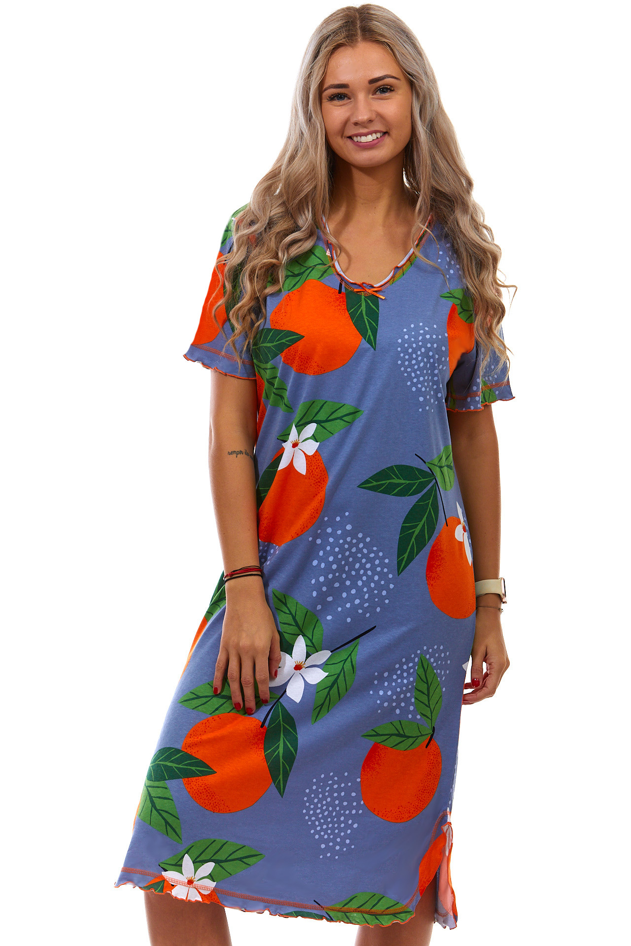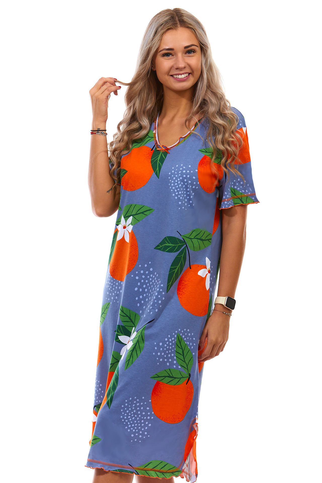 Modrá a oranžová dlouhá noční košilka pro ženy s pomerančí