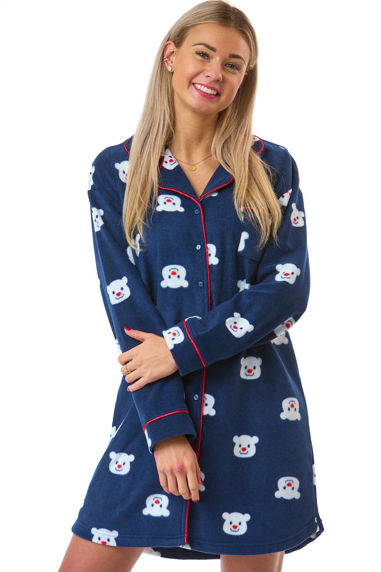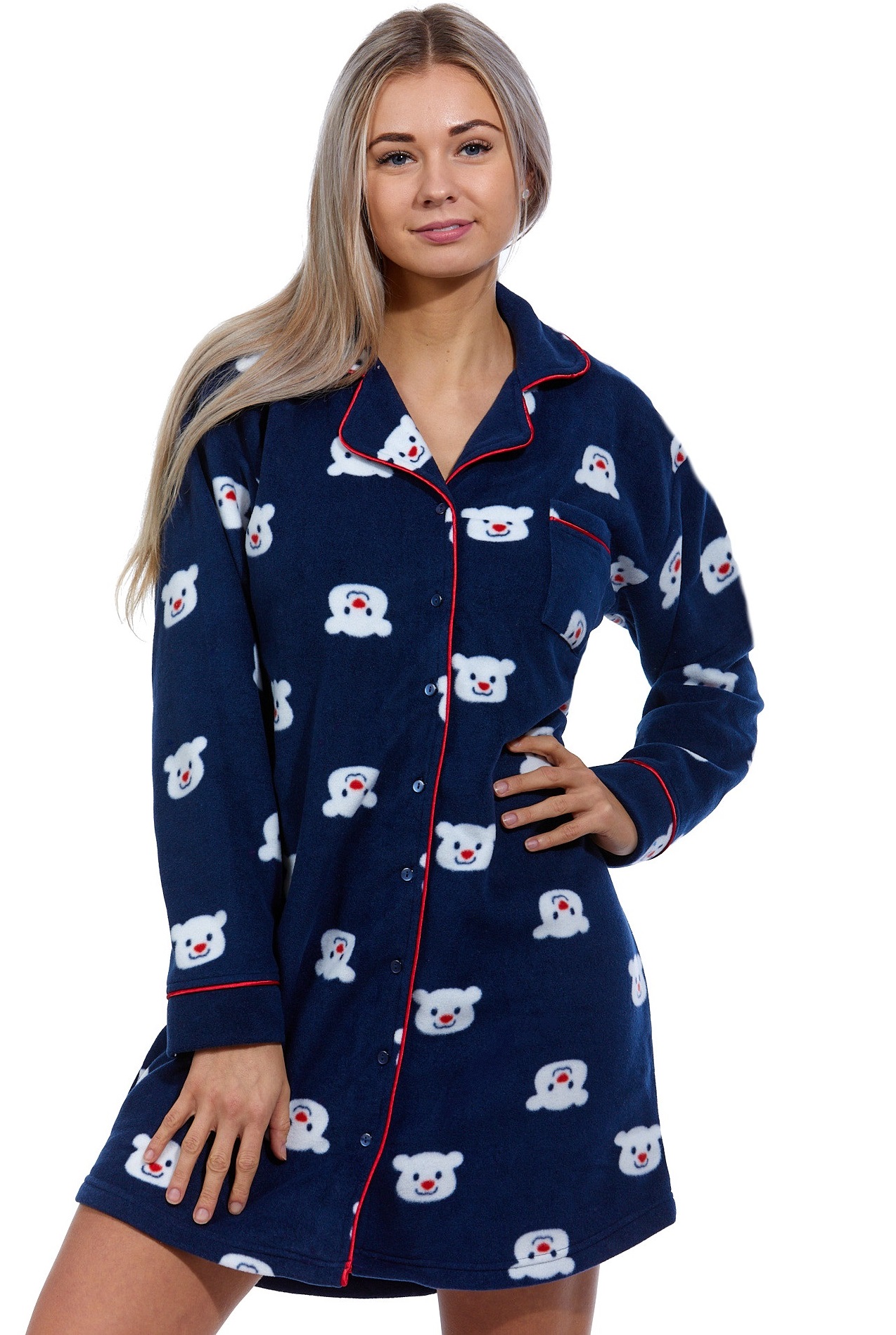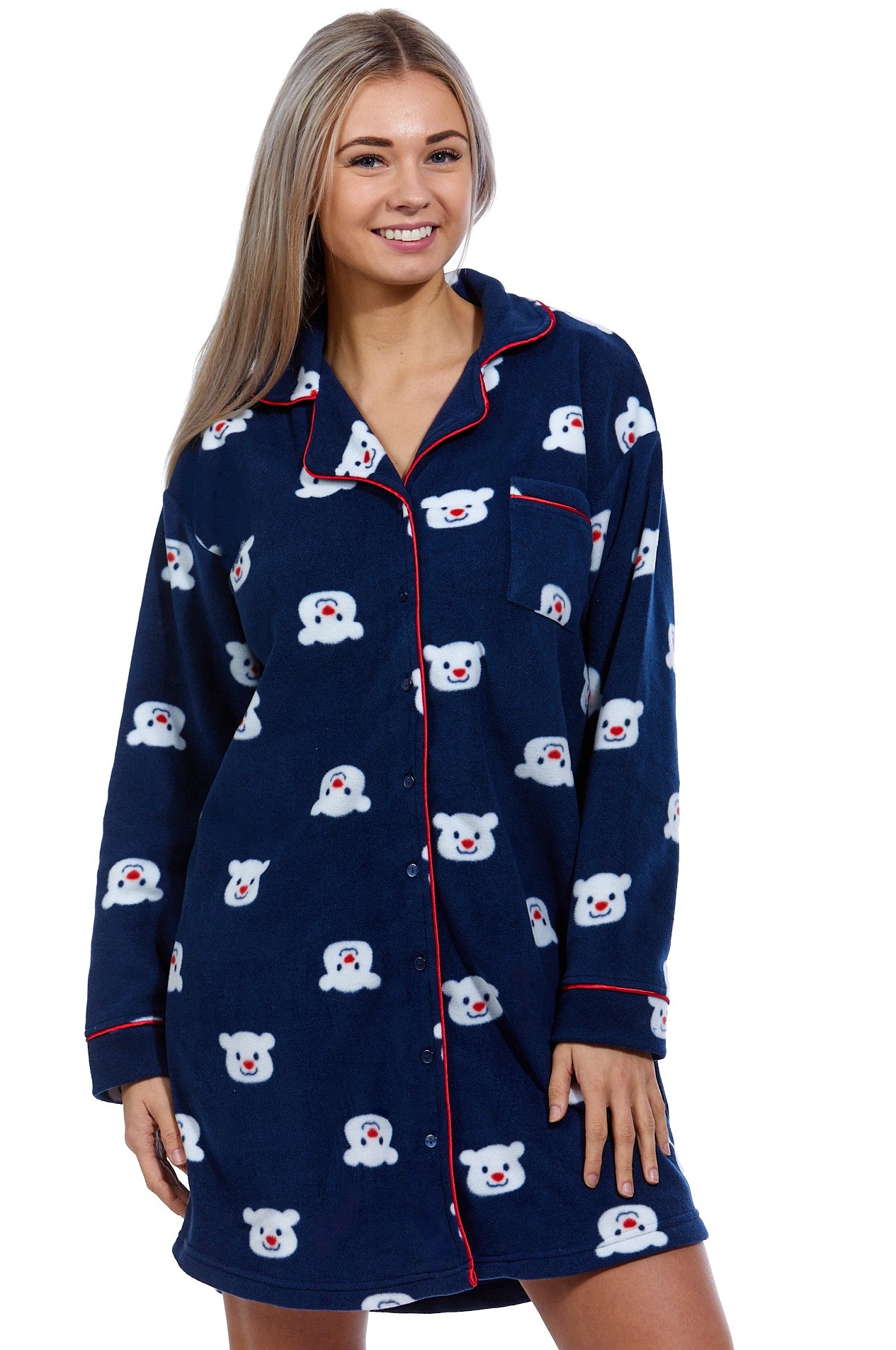 Modrá i bílá hřejivá dámská noční košile s límečkem LEDNÍ MÉĎOVÉ