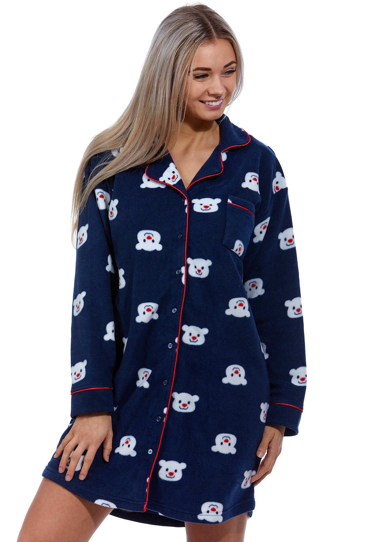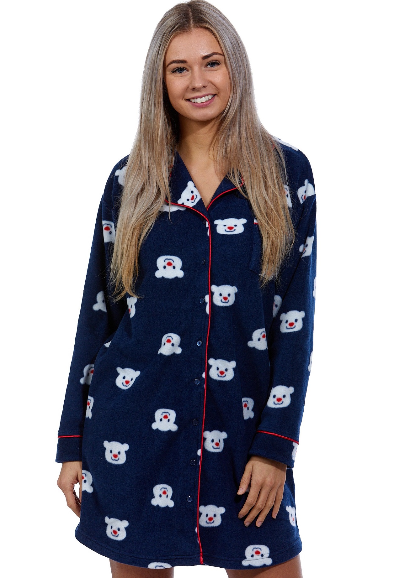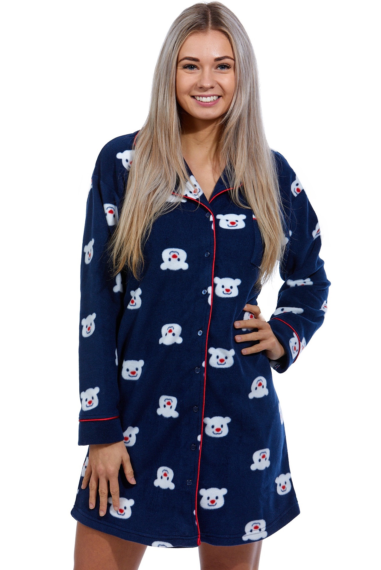 Modrá i bílá hřejivá dámská noční košile s límečkem LEDNÍ MÉĎOVÉ