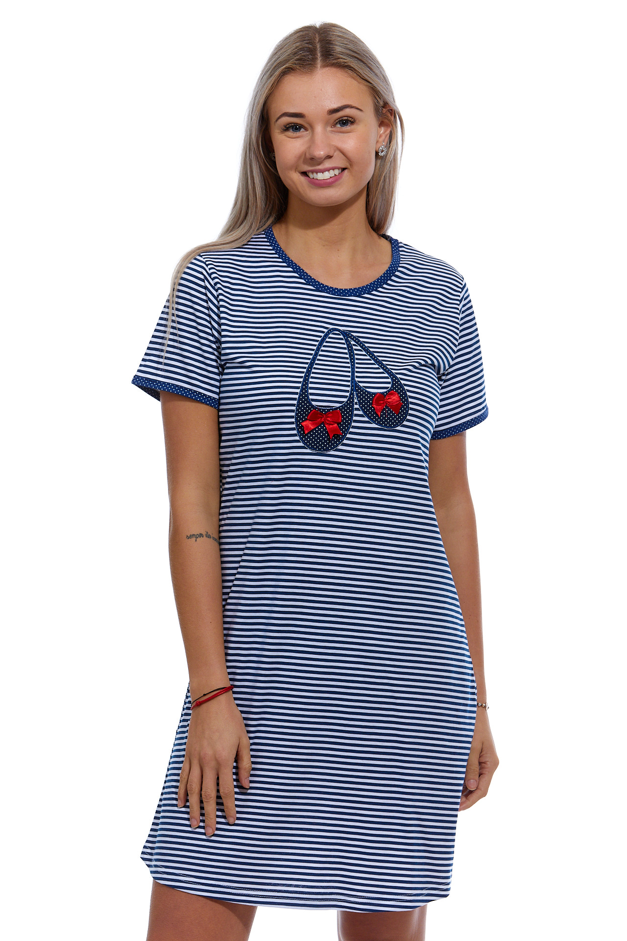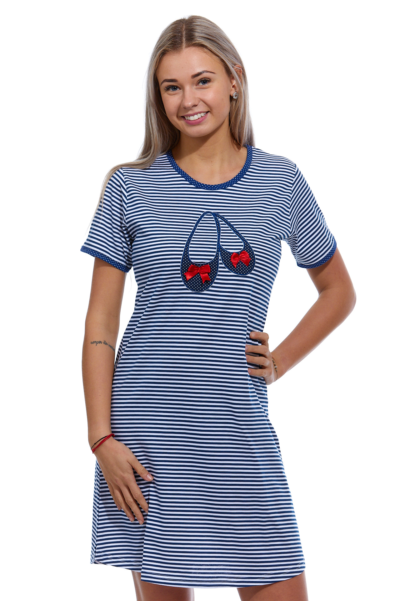 Modrá i bíle pruhovaná noční košilka pro ženy či dívky STŘEVÍČKY NA DOMA