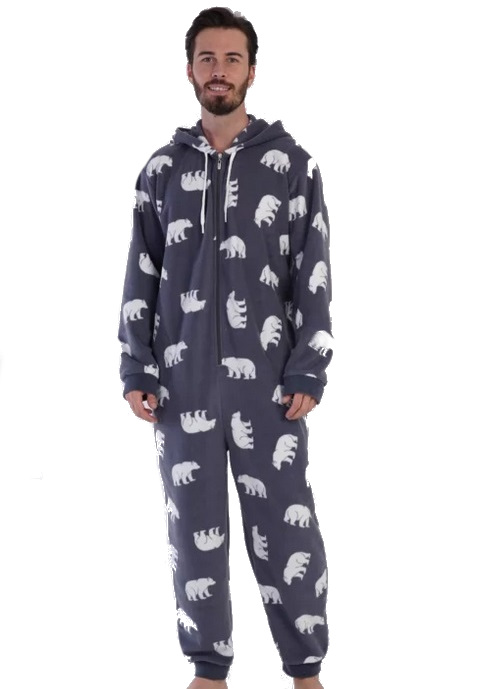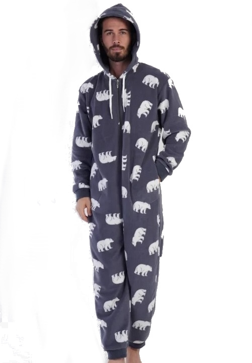 Modrošedý i bílý hřejivý OVERAL pánský na zip, lední medvědi 1Z1524
