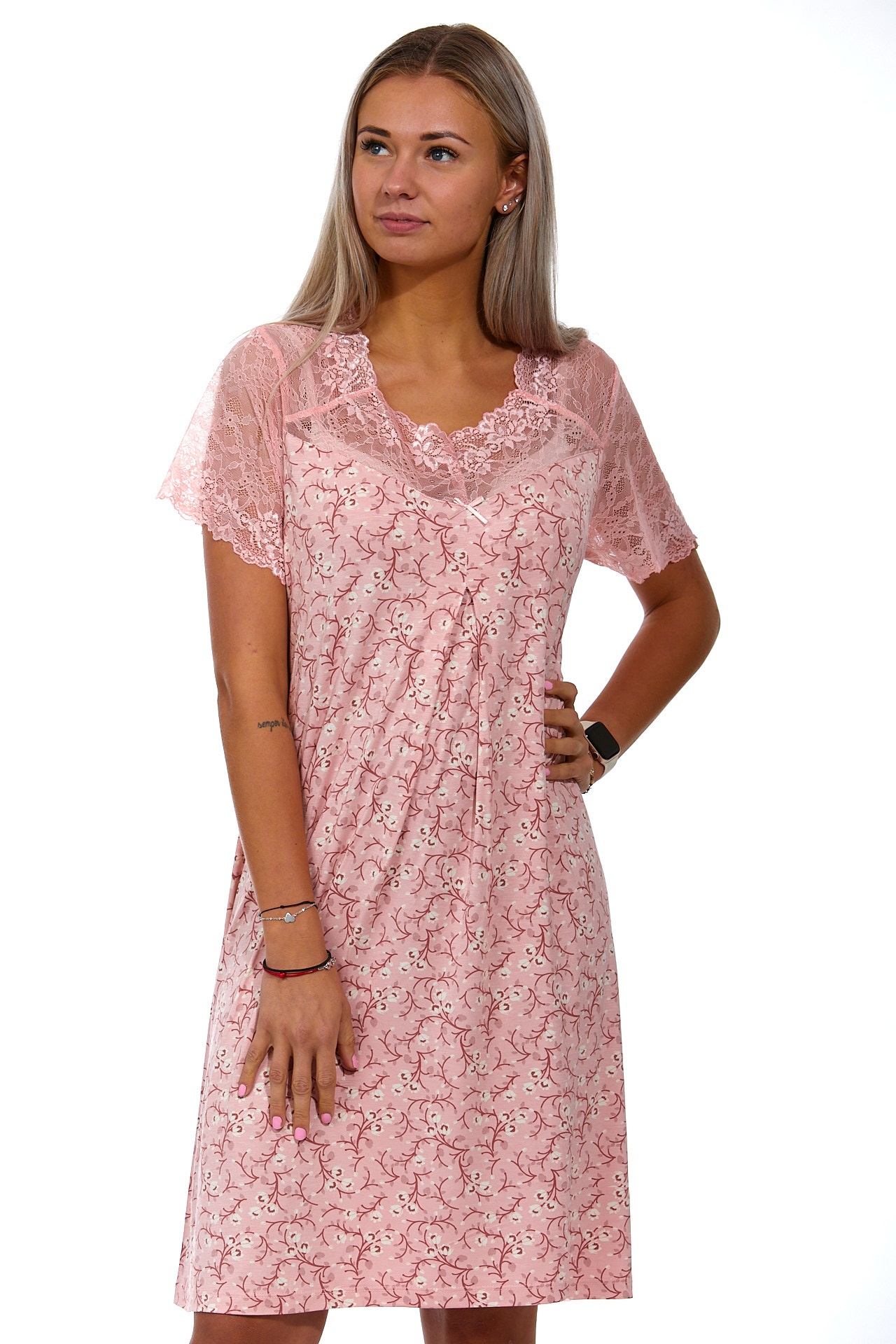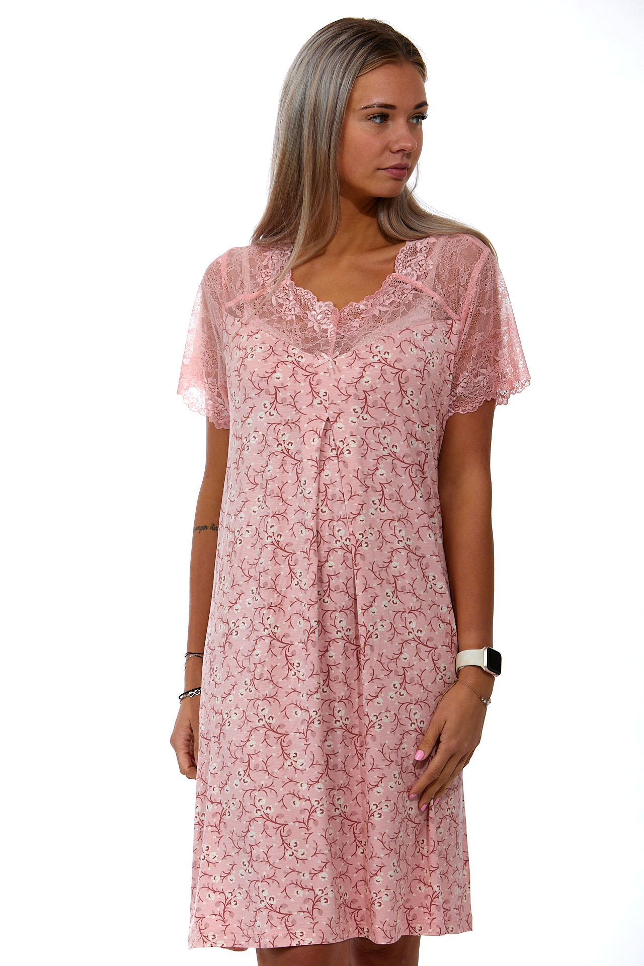 Růžová noční košilka pro plnoštíhlé ženy, jemná s růžičkovou mozaikou a jemnou krajkou