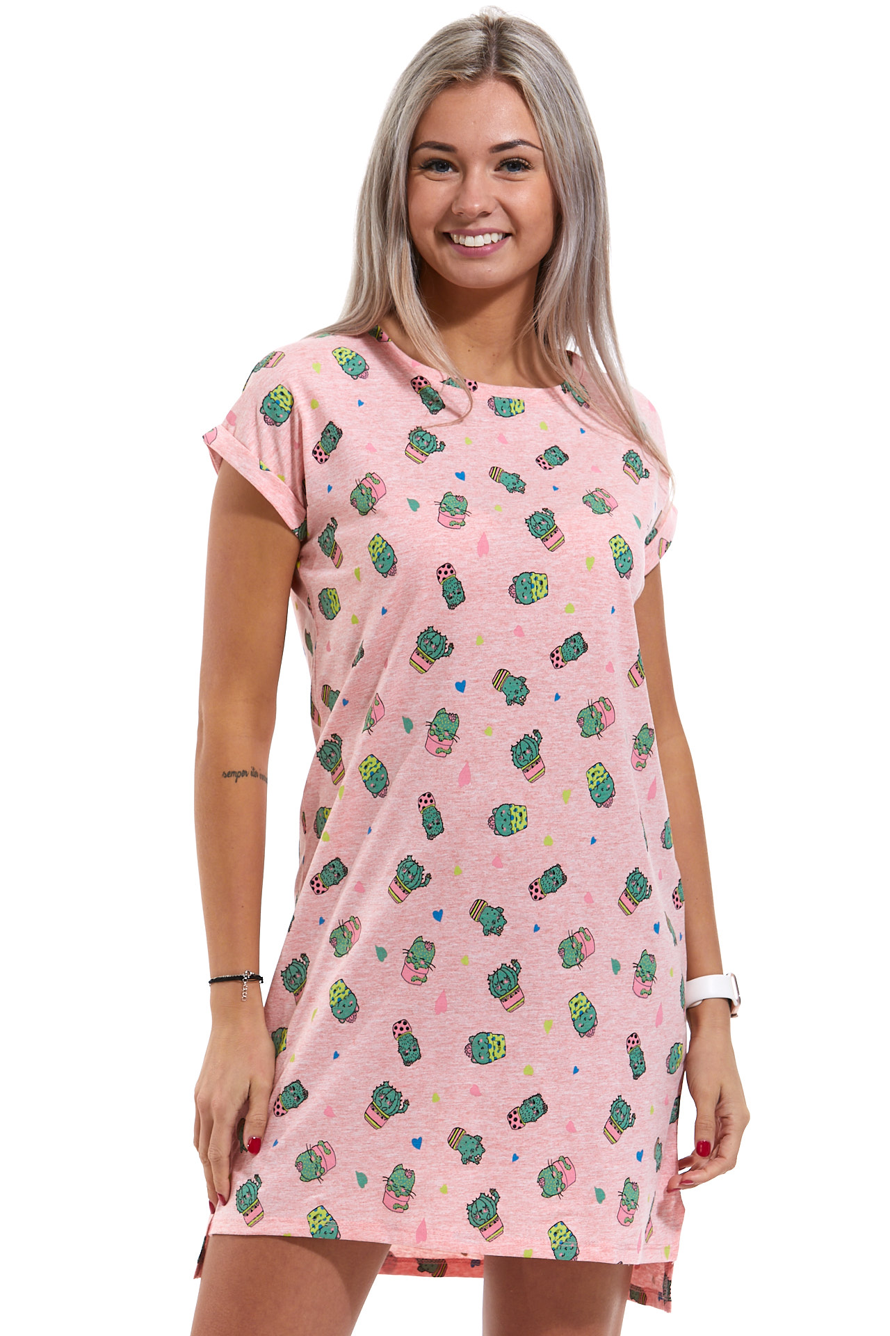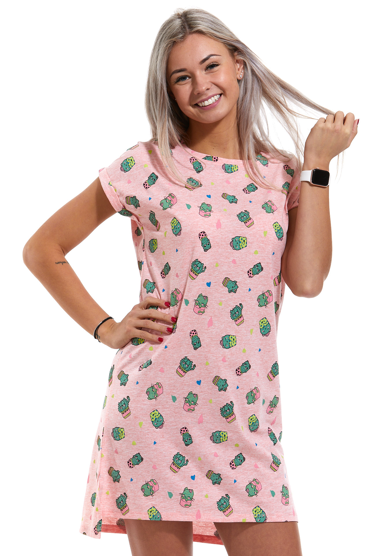 Růžová noční košilka pro ženy kočičky jako kaktusy