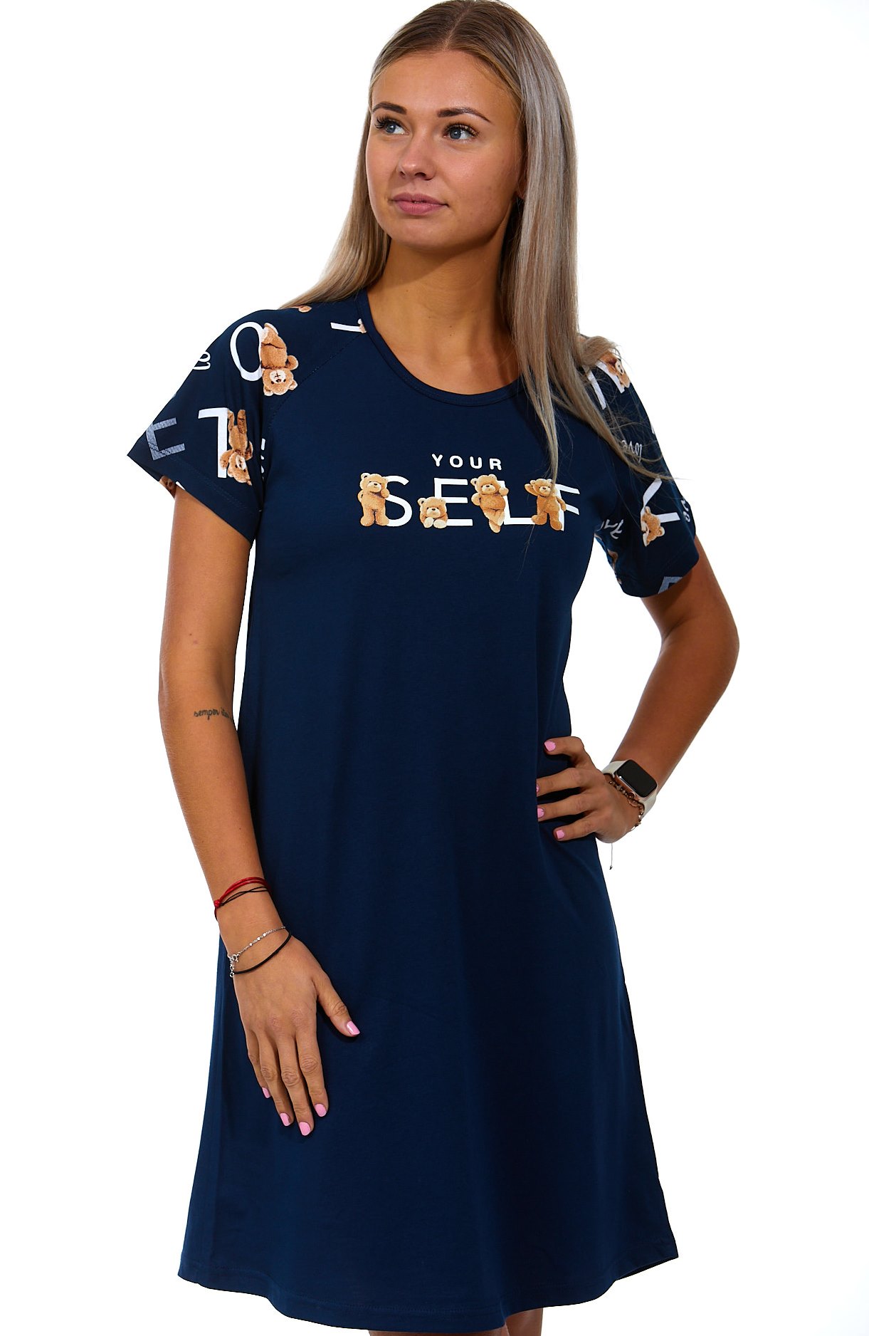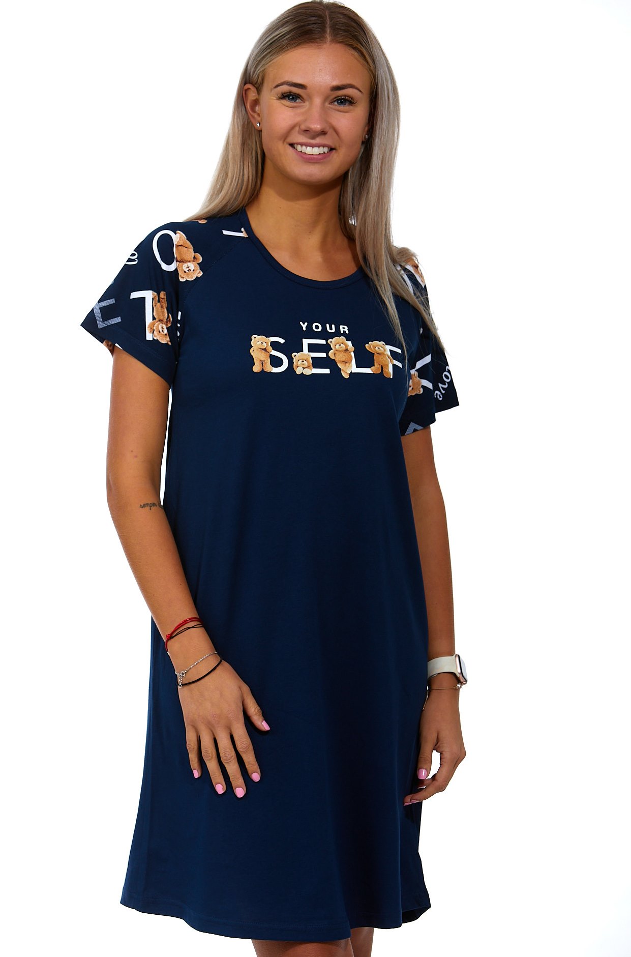 Tmavě modrá i hnědá noční košilka pro ženy YOUR SELF - plyšový medvídci