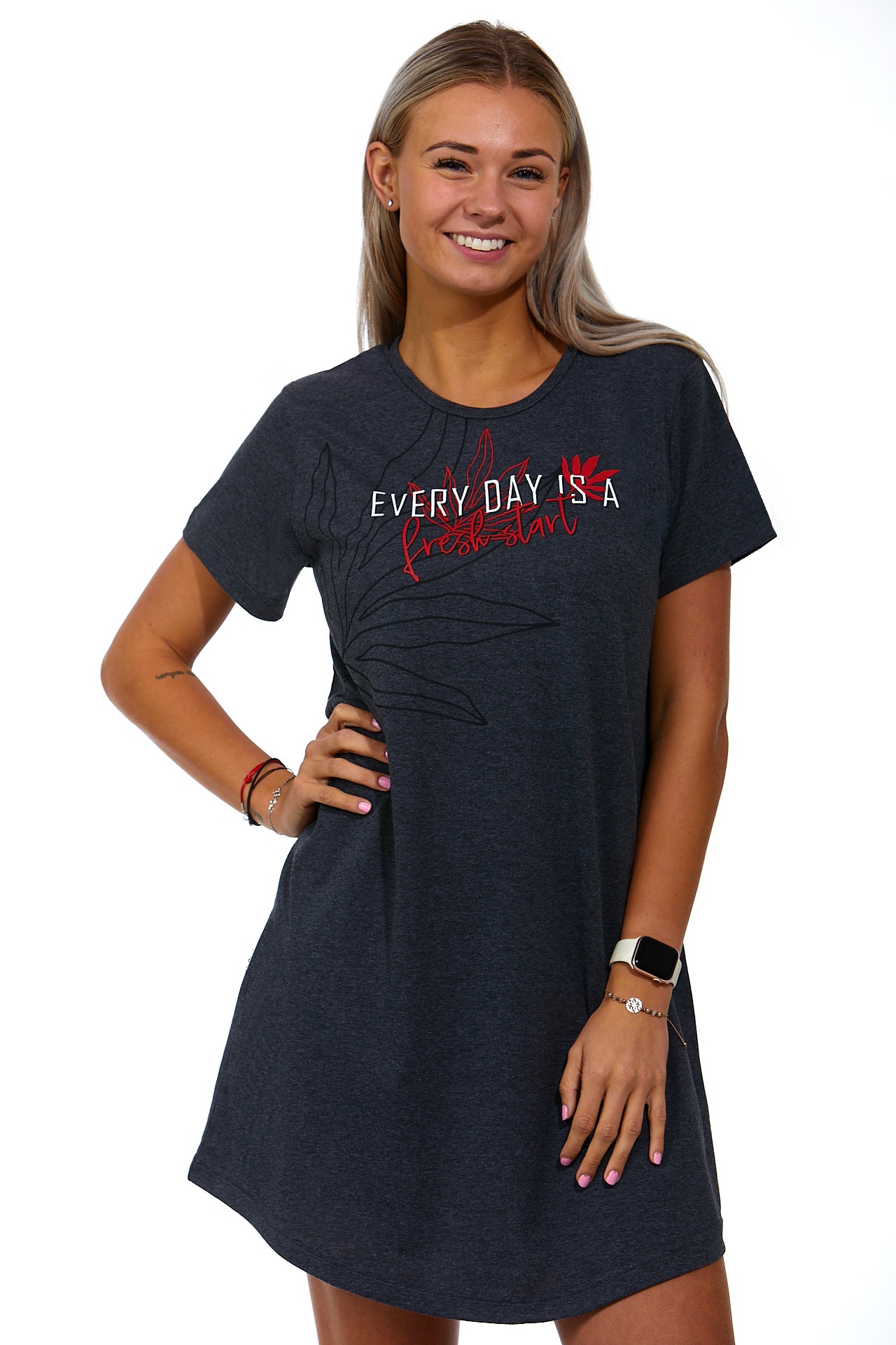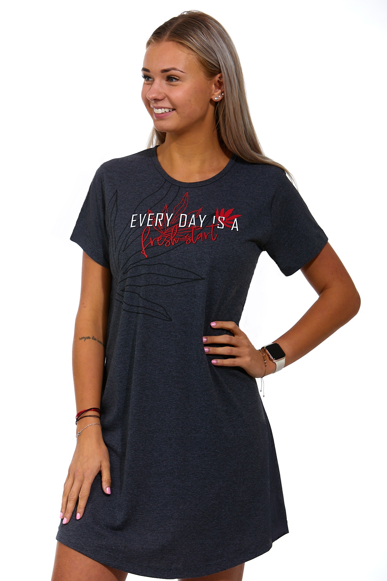 Tmavě šedá i červená sportovní noční košilka pro ženy, EVERY DAY IS A Fresh start
