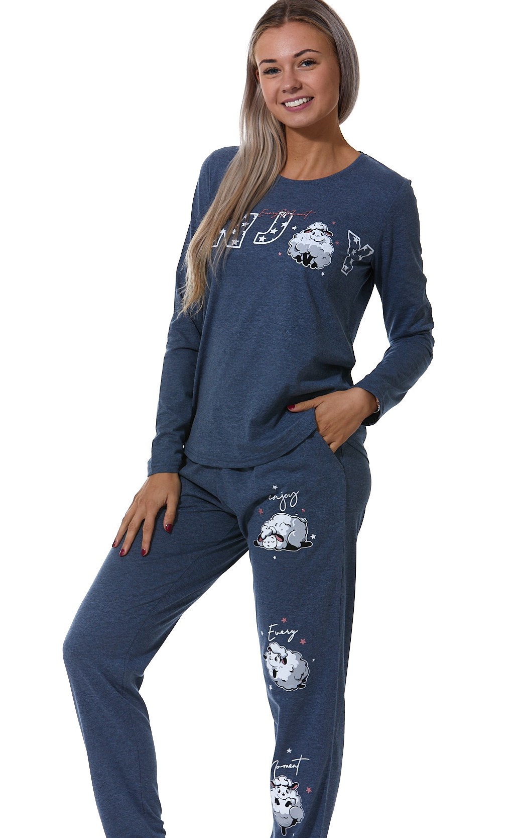 Pyžamo modré dámské s ovečkama ENJOY