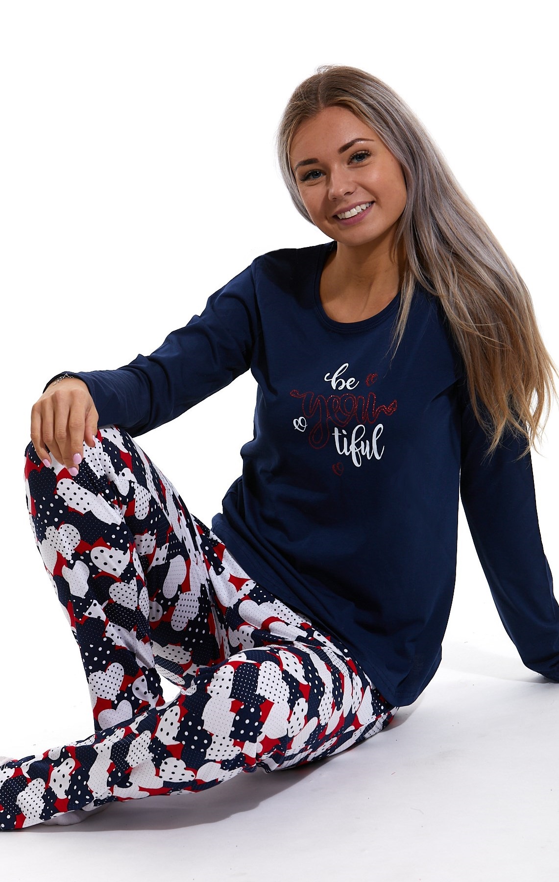 Modré srdíčkové dámské pyžamo, Beyoutiful