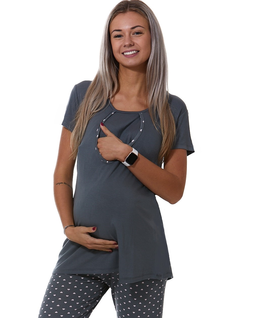 Šedé pyžamo kojící a těhotenské, decentní s puntíky 1D1172