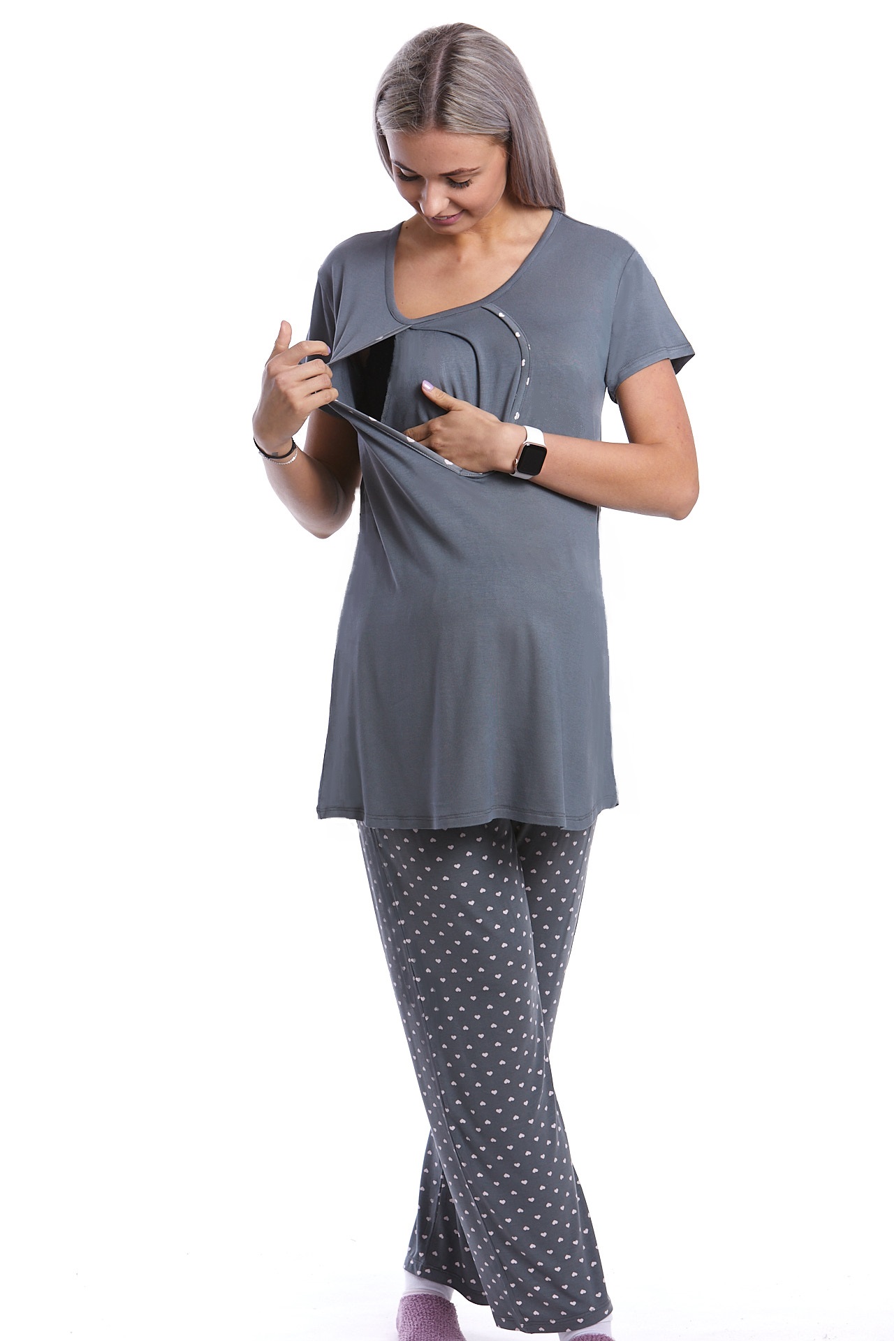 Šedé pyžamo kojící a těhotenské, decentní s puntíky