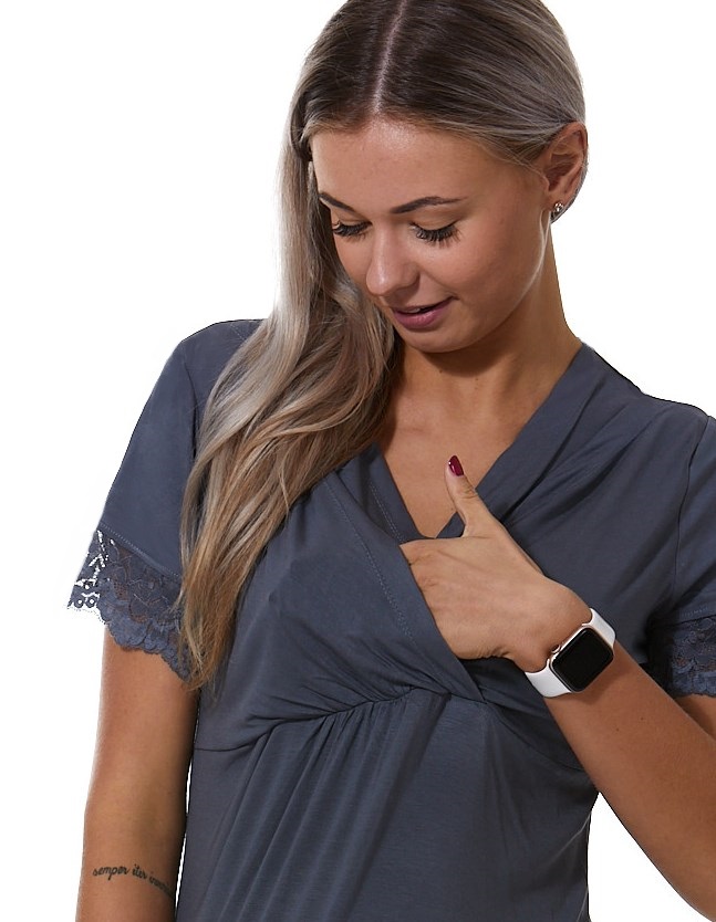Pyžamo kojící a těhotenské, Tmavě šedé s krajkou