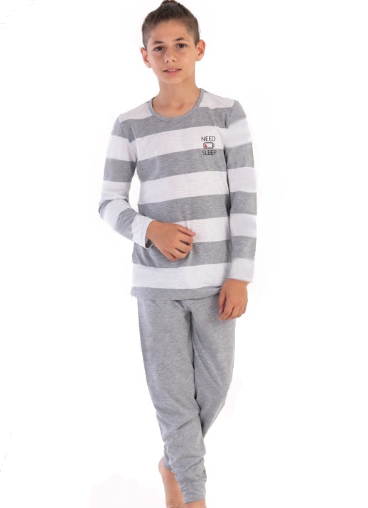 Šedé pruhované pyžamo pro kluky POTŘEBUJI SPÁNEK, VYBITÁ BATERIE
