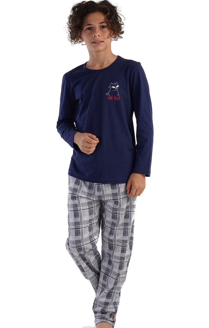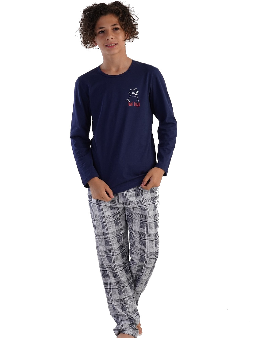 Modré i šedě kárované pyžamo pro kluky BOSS Kočičák