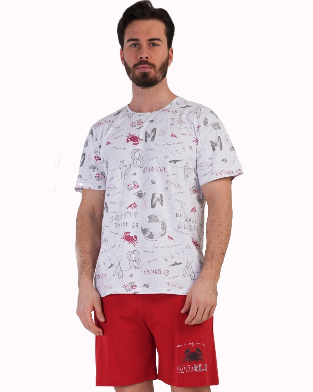 Šedé i tmavě červené grafitové pyžamo pro muže, krabí svět
