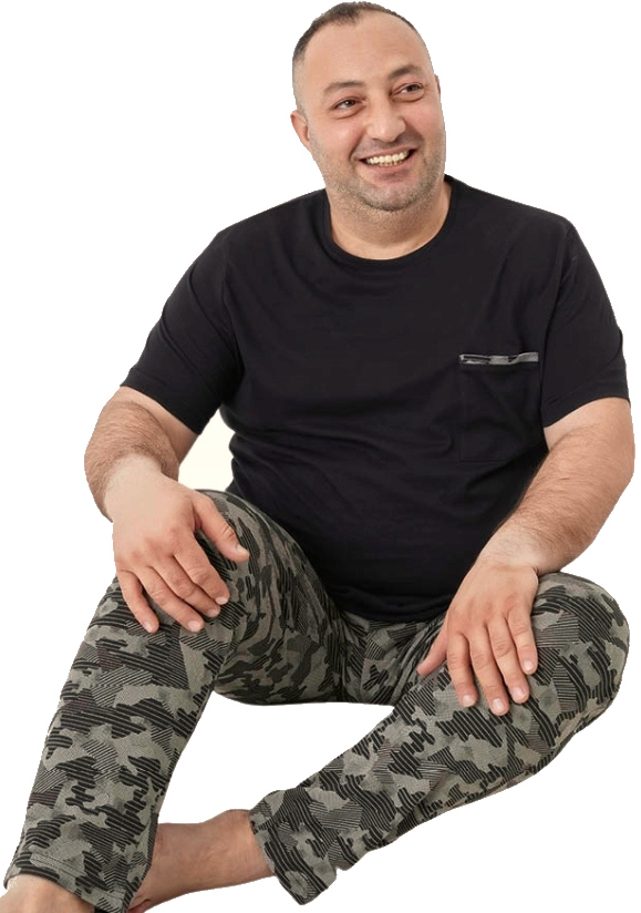 Černé a šedo maskáčové pyžamo pro plnoštíhlé muže