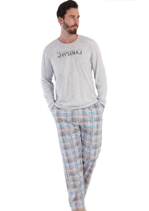 Šedé i modro béžově kárované pyžamo pro muže The ORIGINAL
