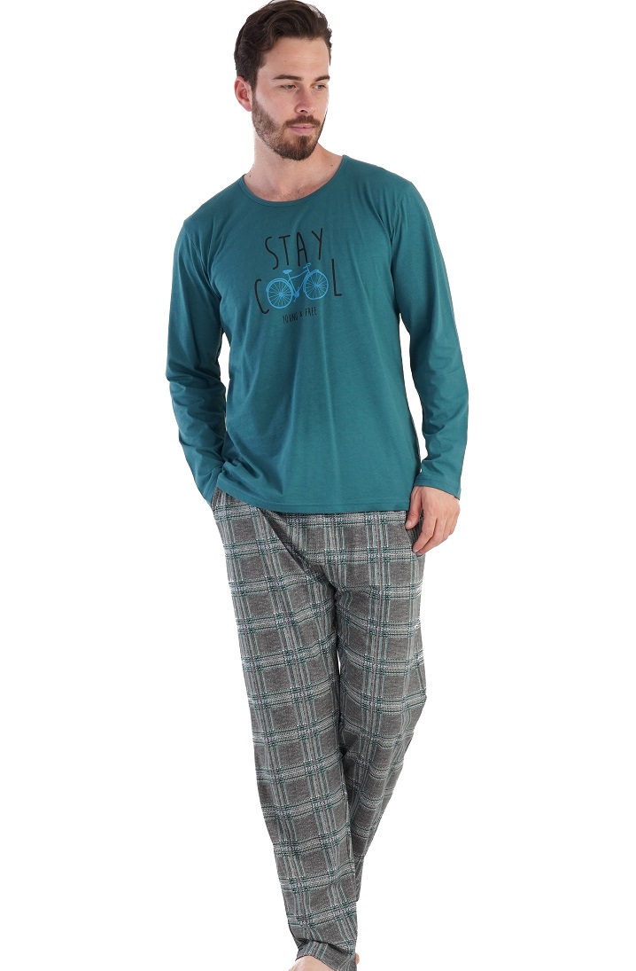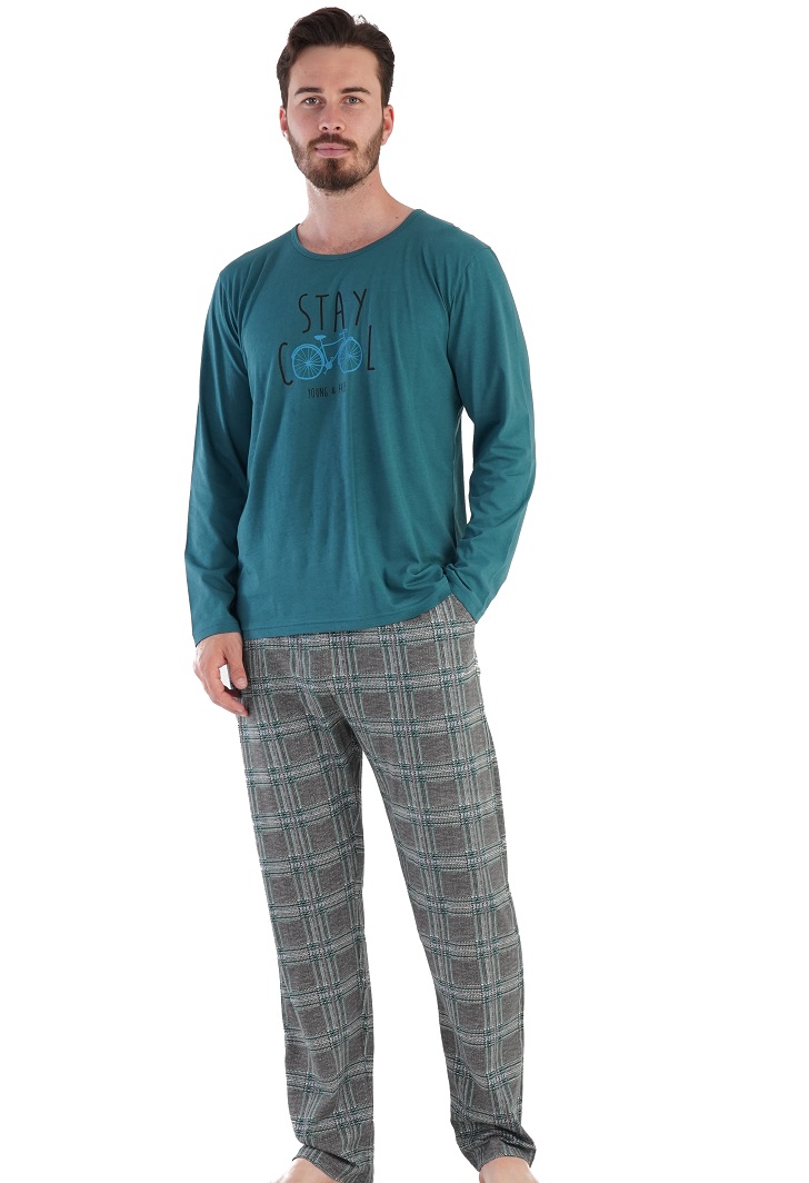 Zelené i šedé kárované pyžamo pro muže cyklisty - STAY COOL s kolem 1P1528