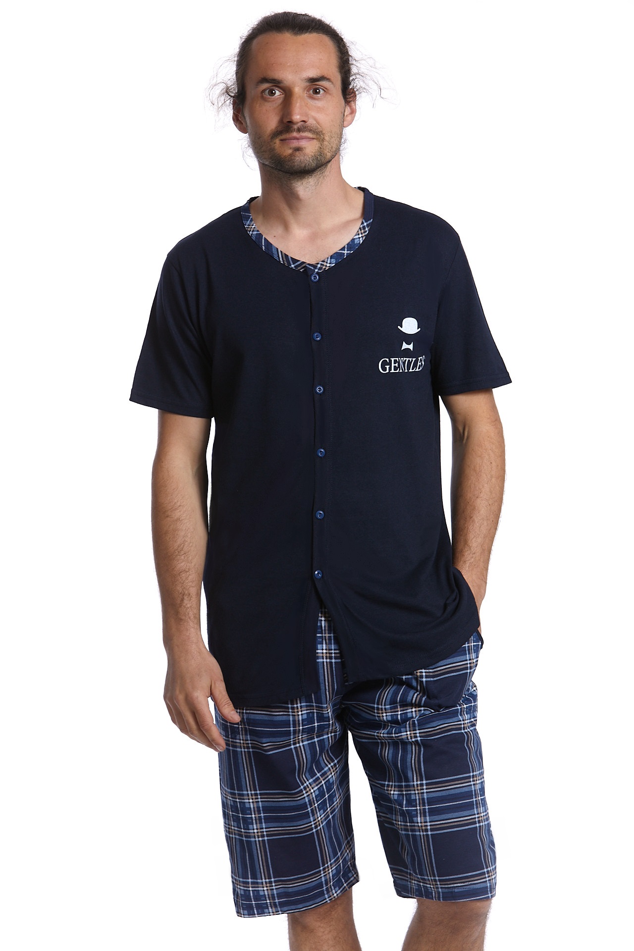 Modré pyžamo pro muže celopropínací Gentleman s buřinkou