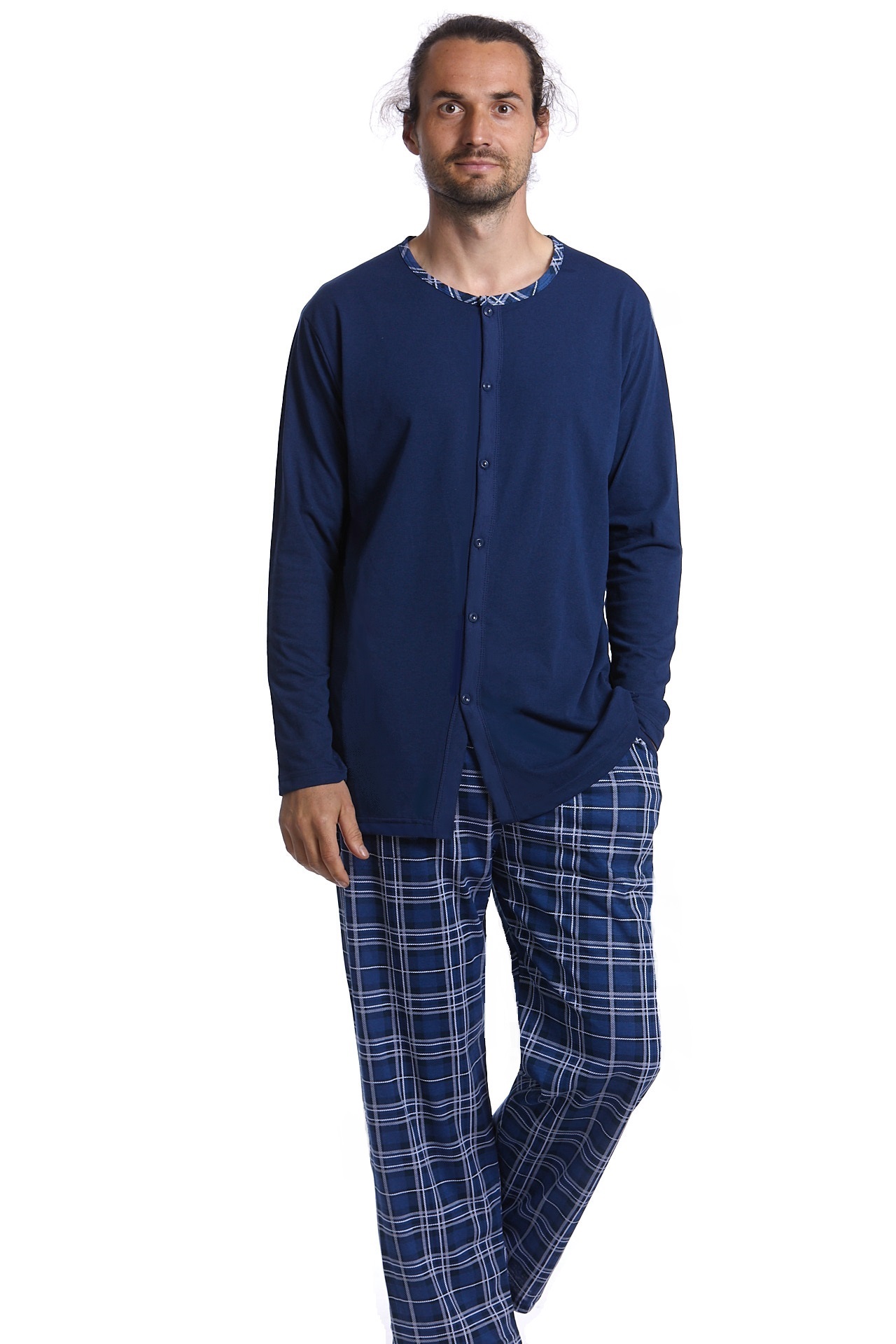 Modré pyžamo pro muže celopropínací