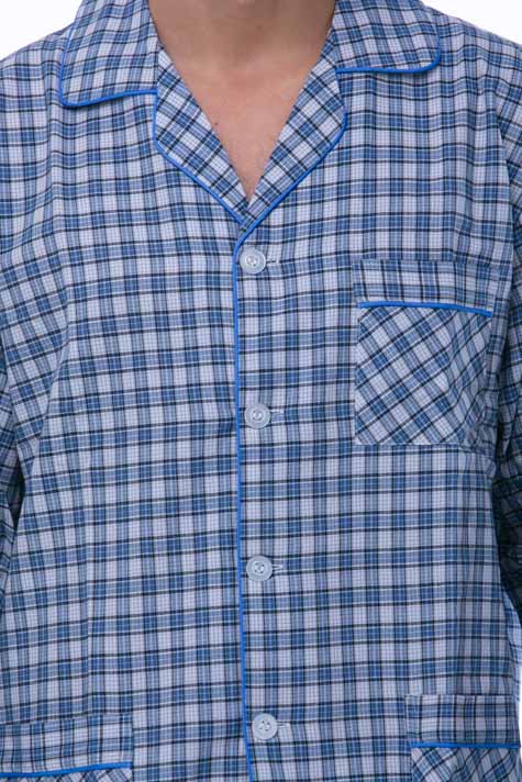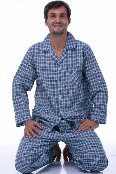 Pánské pyžamo z nejjemnější bavlny je lehké a vzdušné, košile má límeček a dlouhý rukáv, kalhoty mají dlouhé nohavice. Pyžamo je vyrobeno z kvalitního materiálu, který i přes svou lehkost dlouho vydrží. Příjemné barvy zvyšují atraktivitu tohoto modelu.