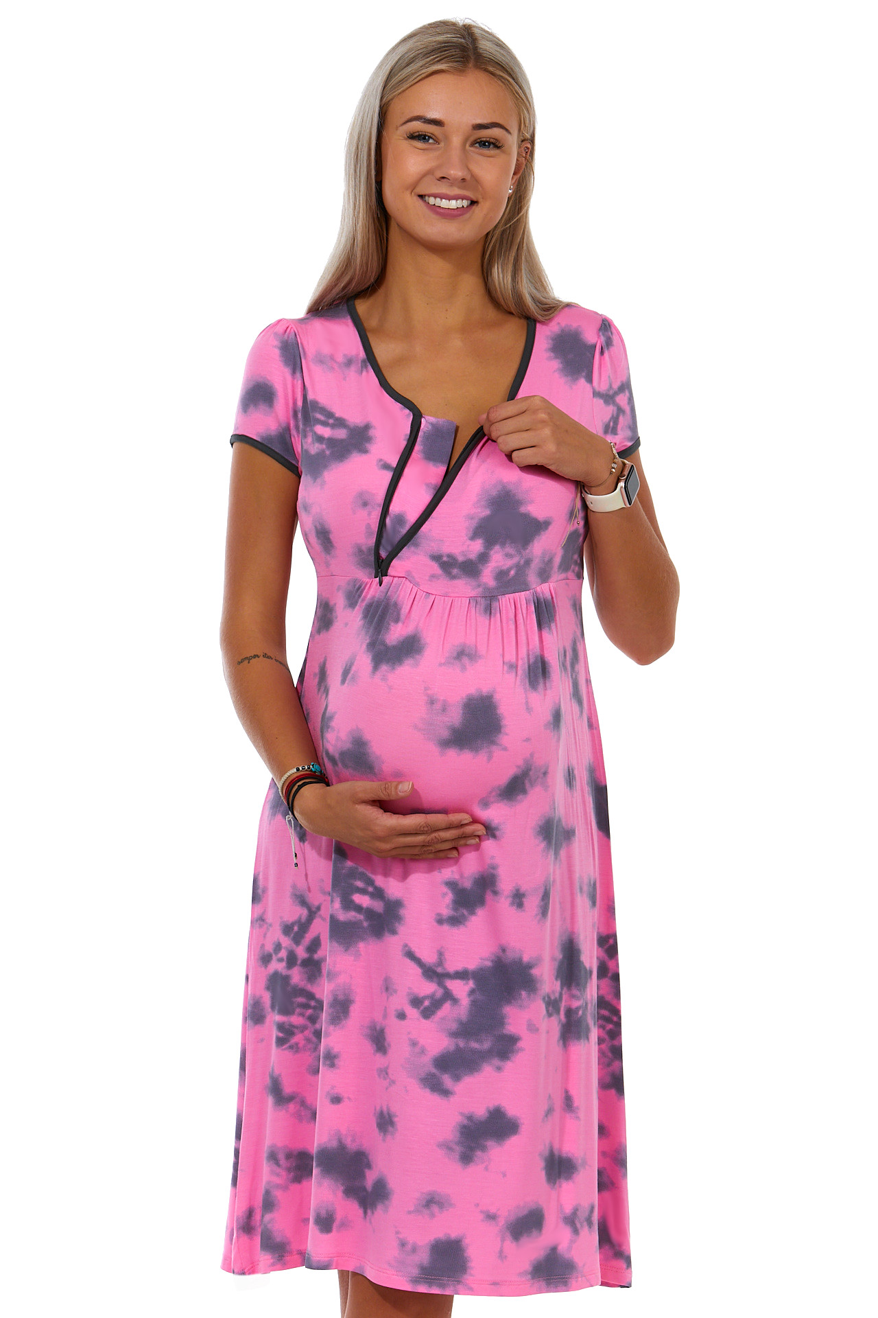 Růžová i šedá batikovaná těhotenská i kojící jemná košilka na zip