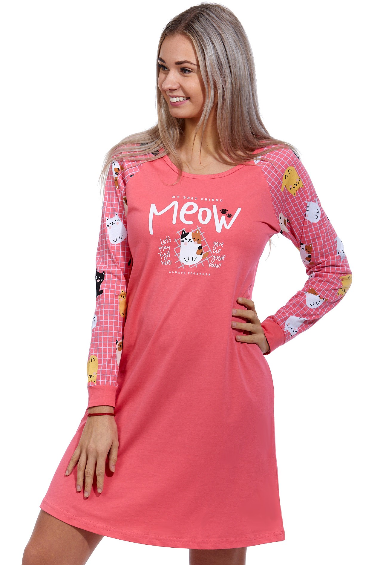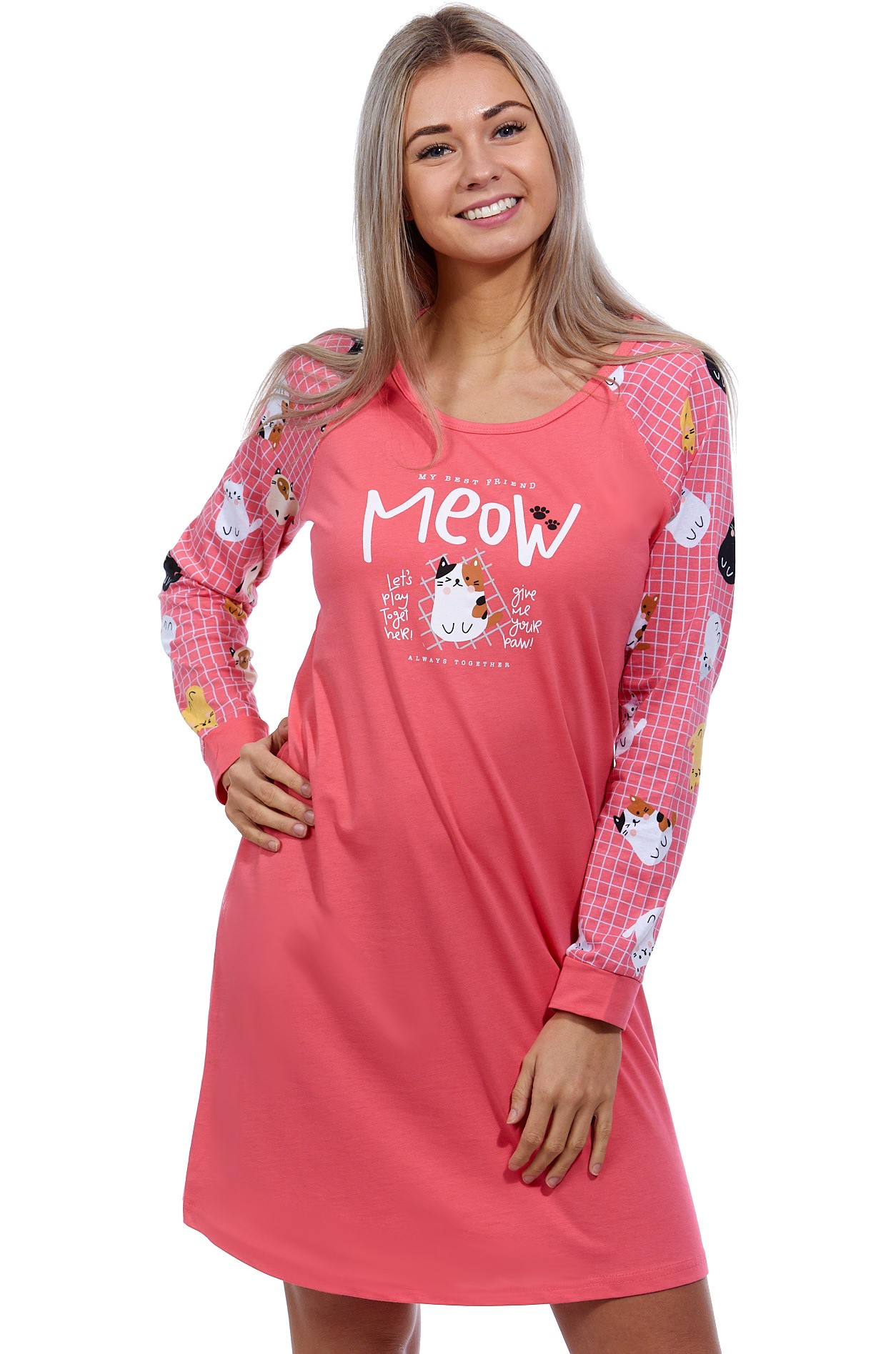 Růžová kočičí noční košilka s dlouhým rukávem MEOW 1C3534