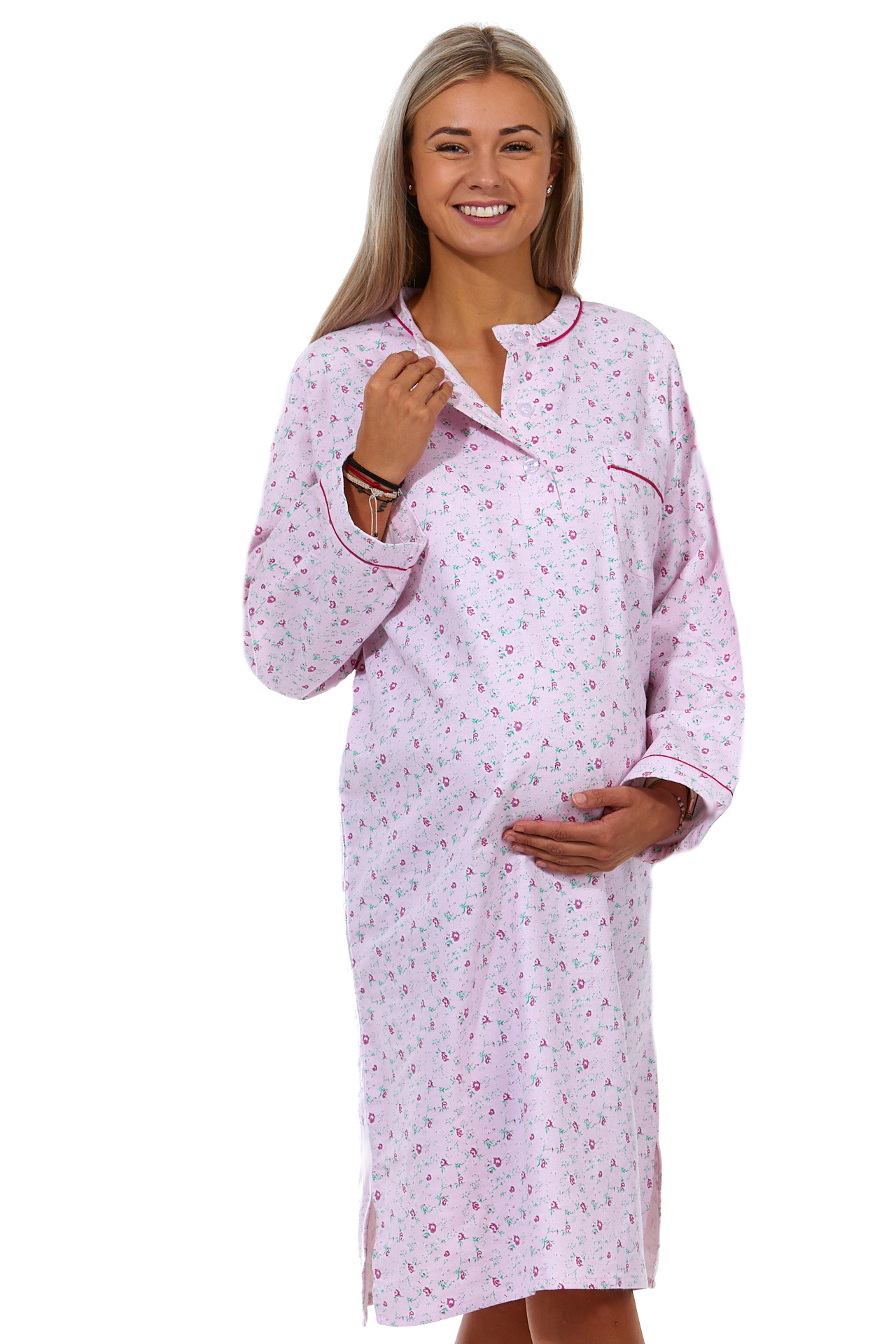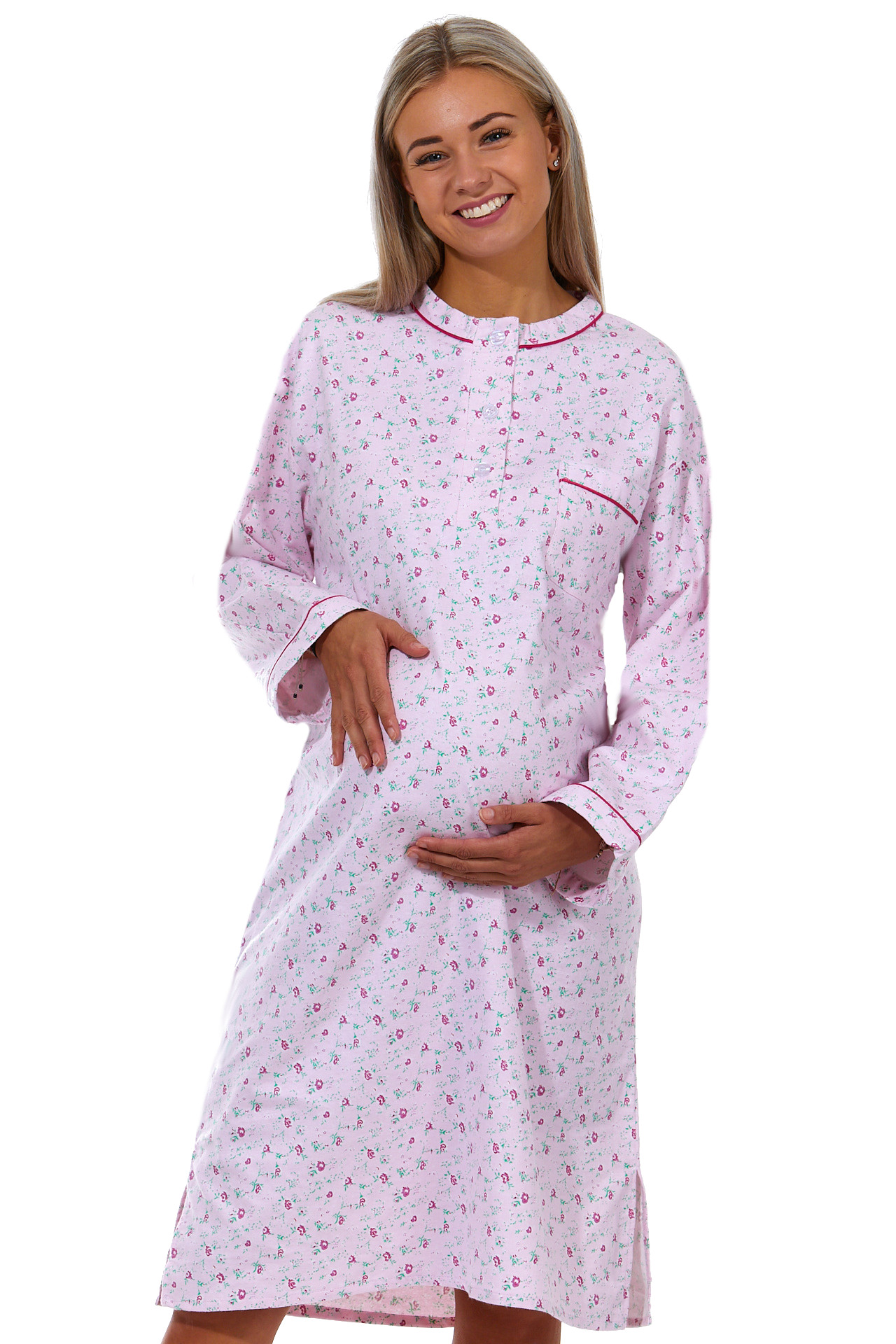 Růžová květinová flanelová extra teplá noční košilka kojící - dlouhá