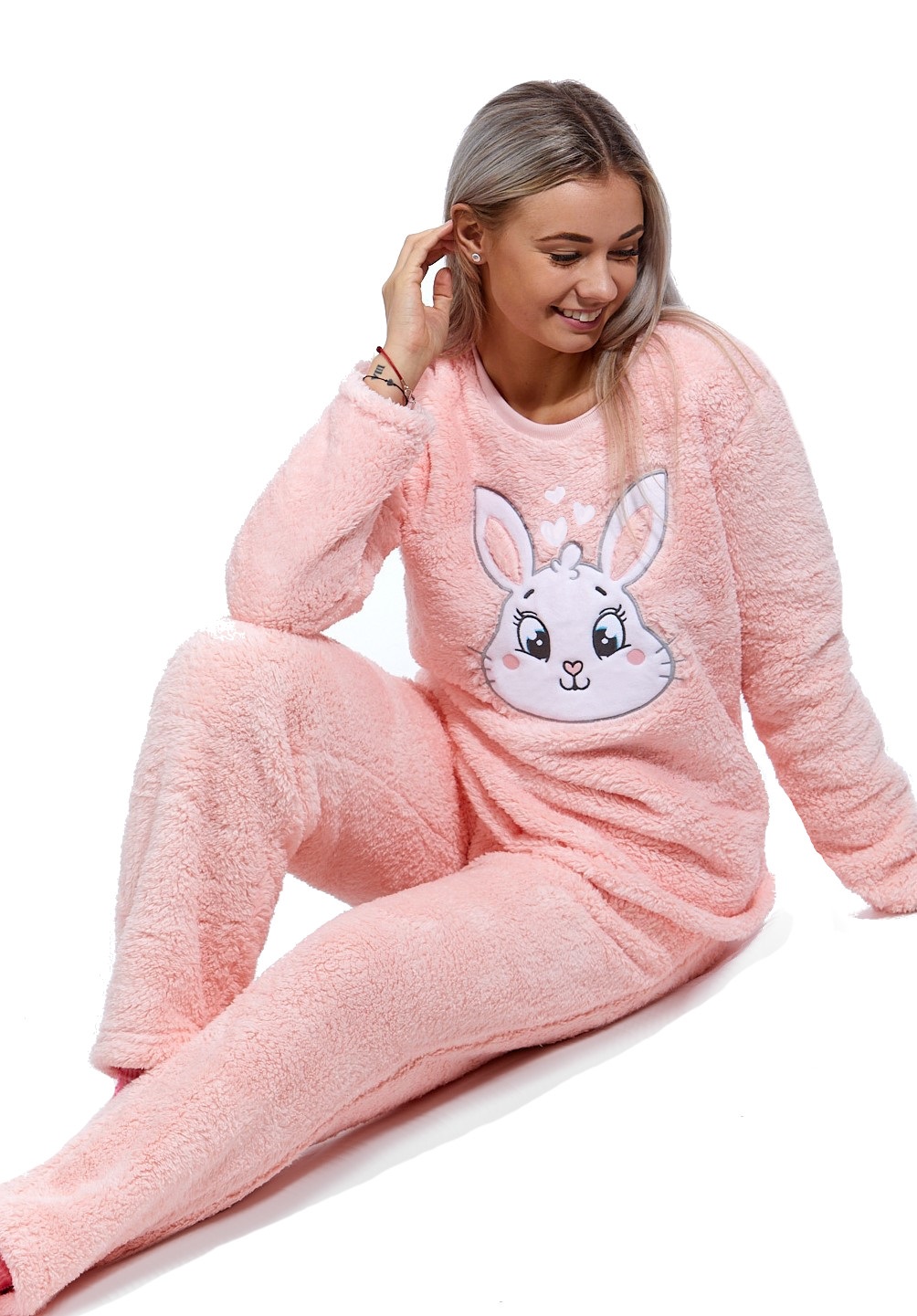 Růžové extra teplé huňaté pyžamo na zimu pro ženy BÍLÝ KRÁLÍČEK