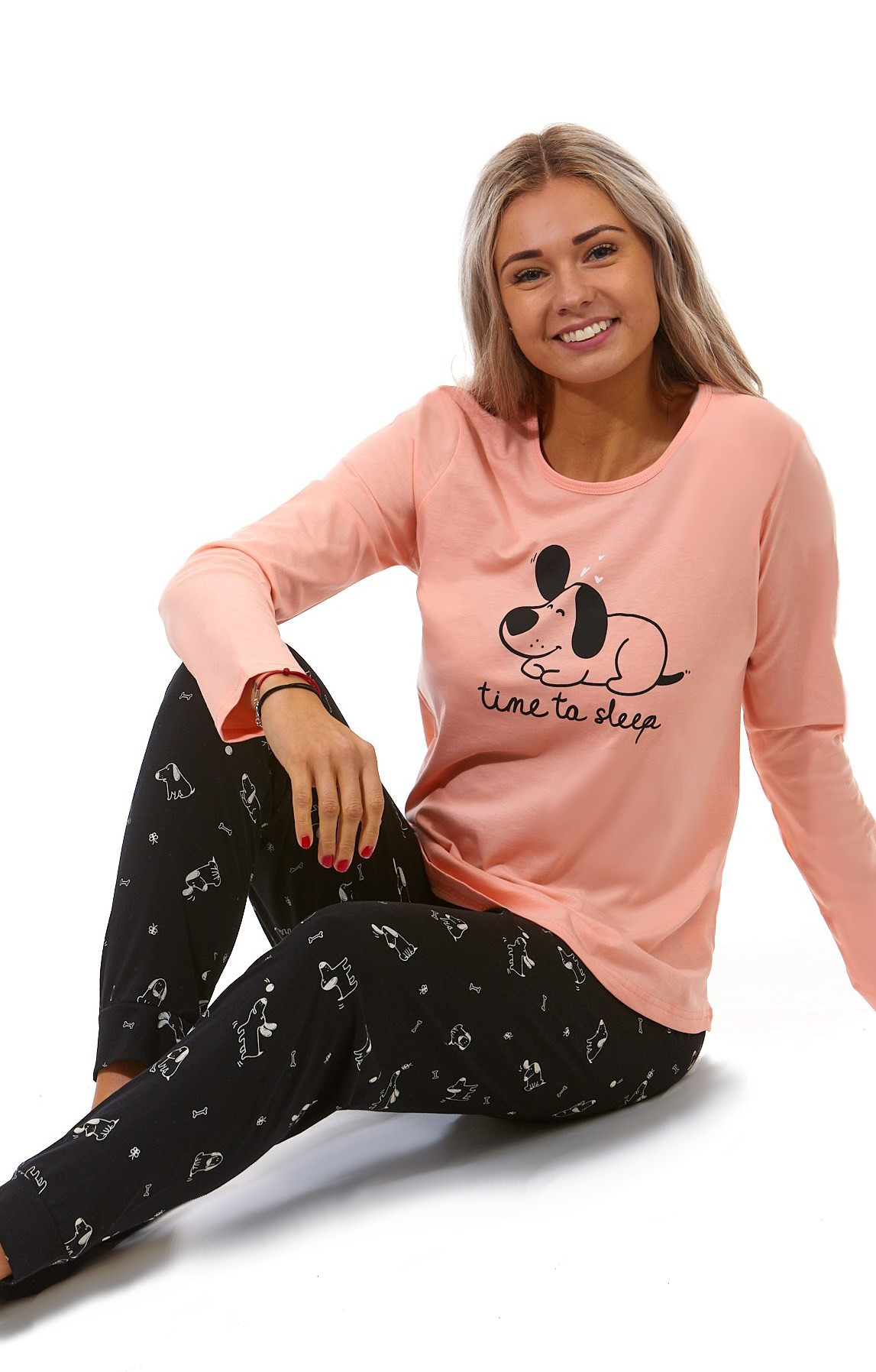 Růžové i černé pyžamo pro ženy či dívky komiks veselých pejsků, pro pejskařky