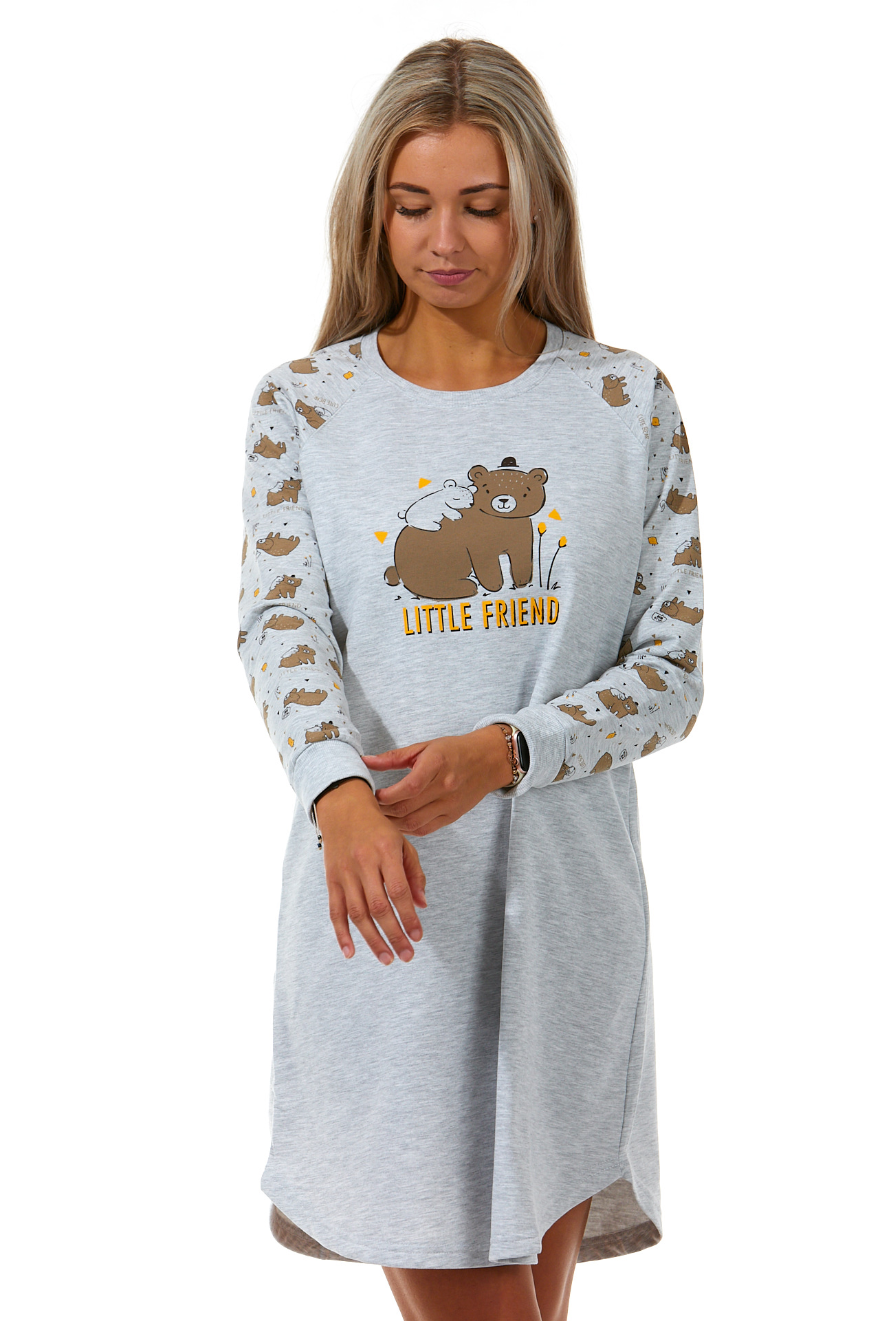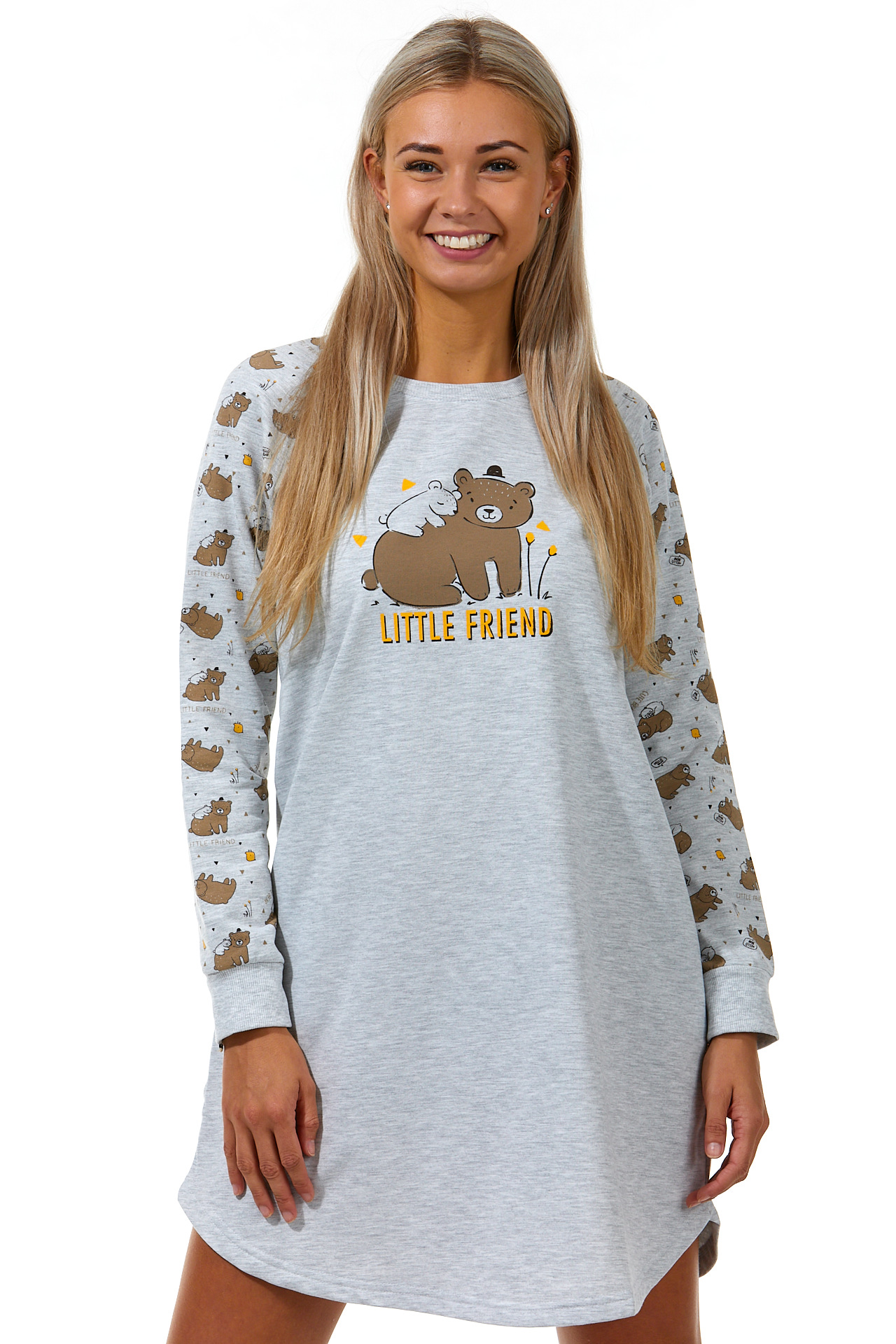 Šedá i hnědá medvědí noční košilka extra teplá z termo bavlny - LITTLE FREND