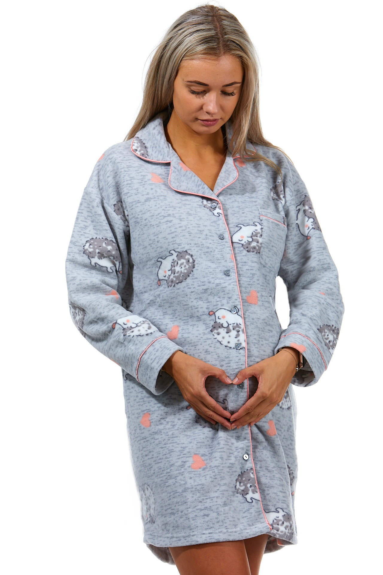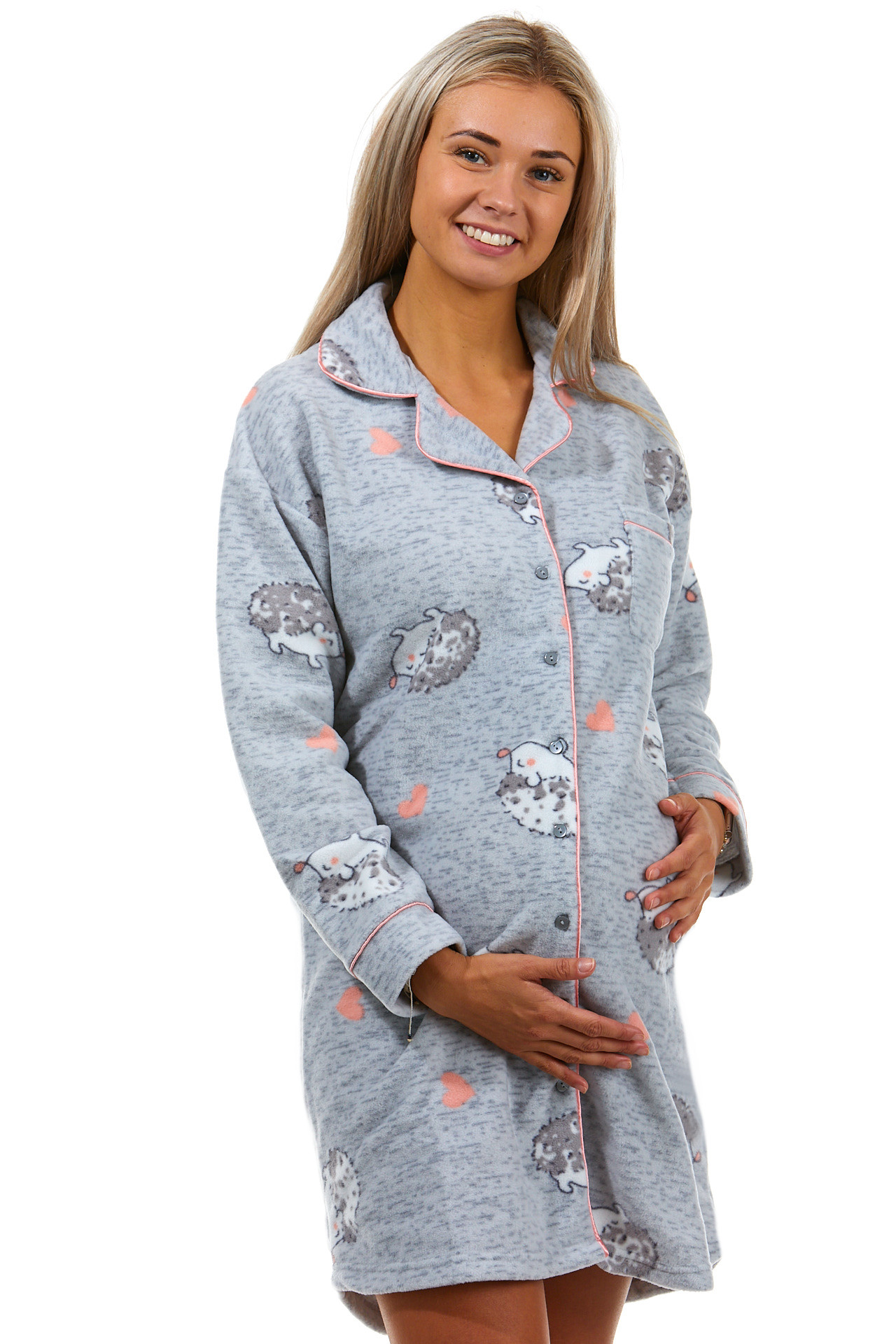 Elegantní extra teplá kojící noční košile z funkčního termo fleece