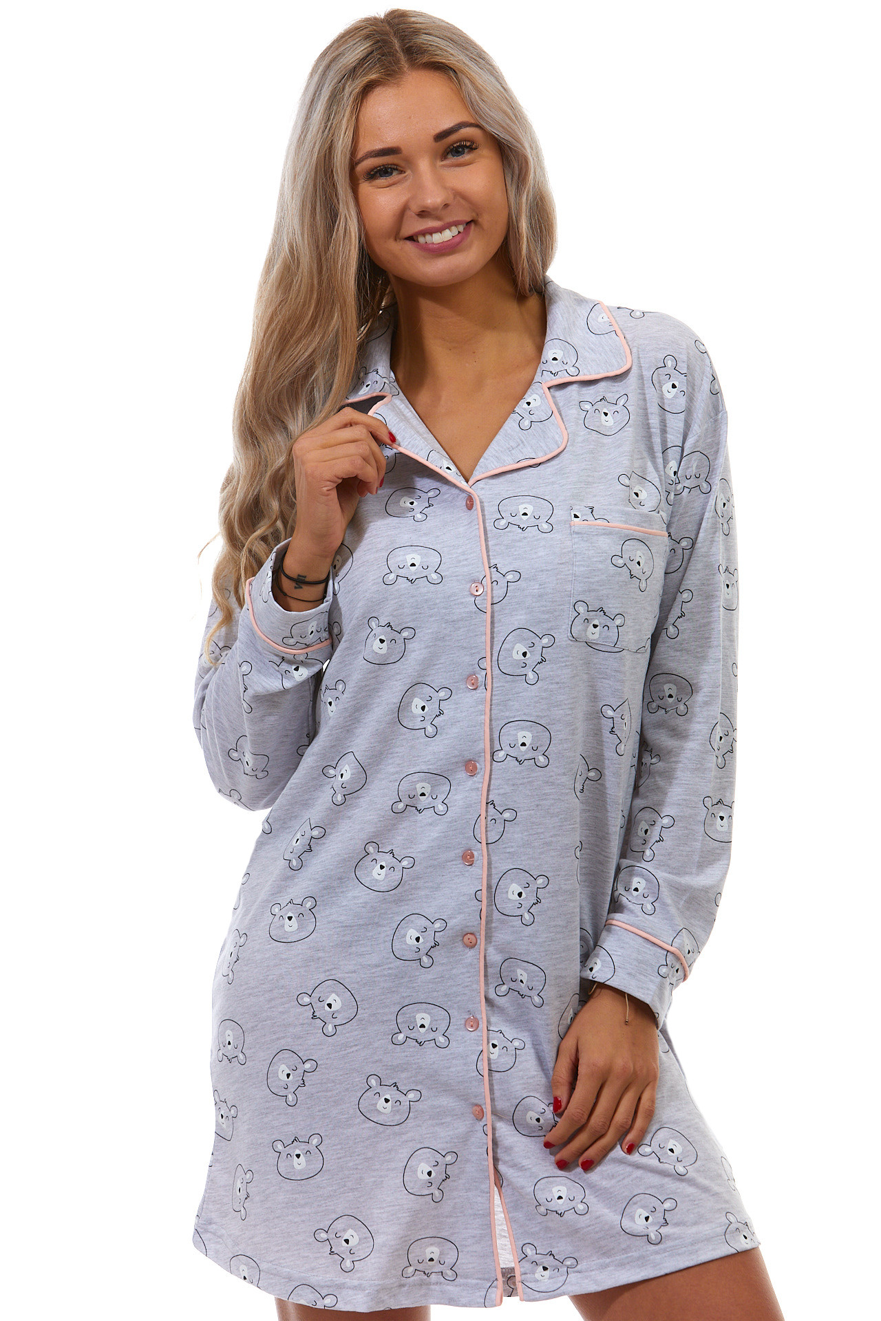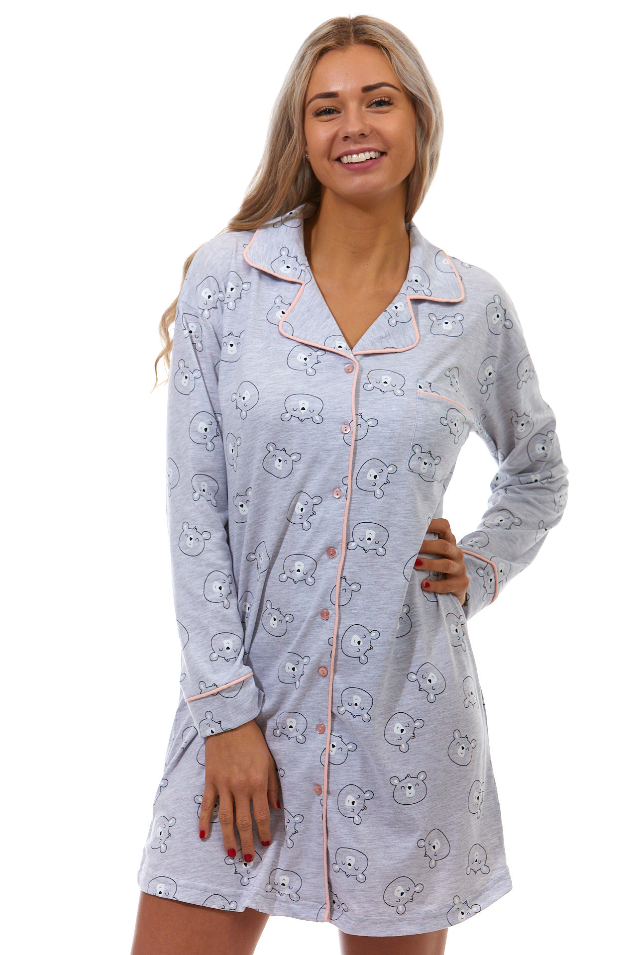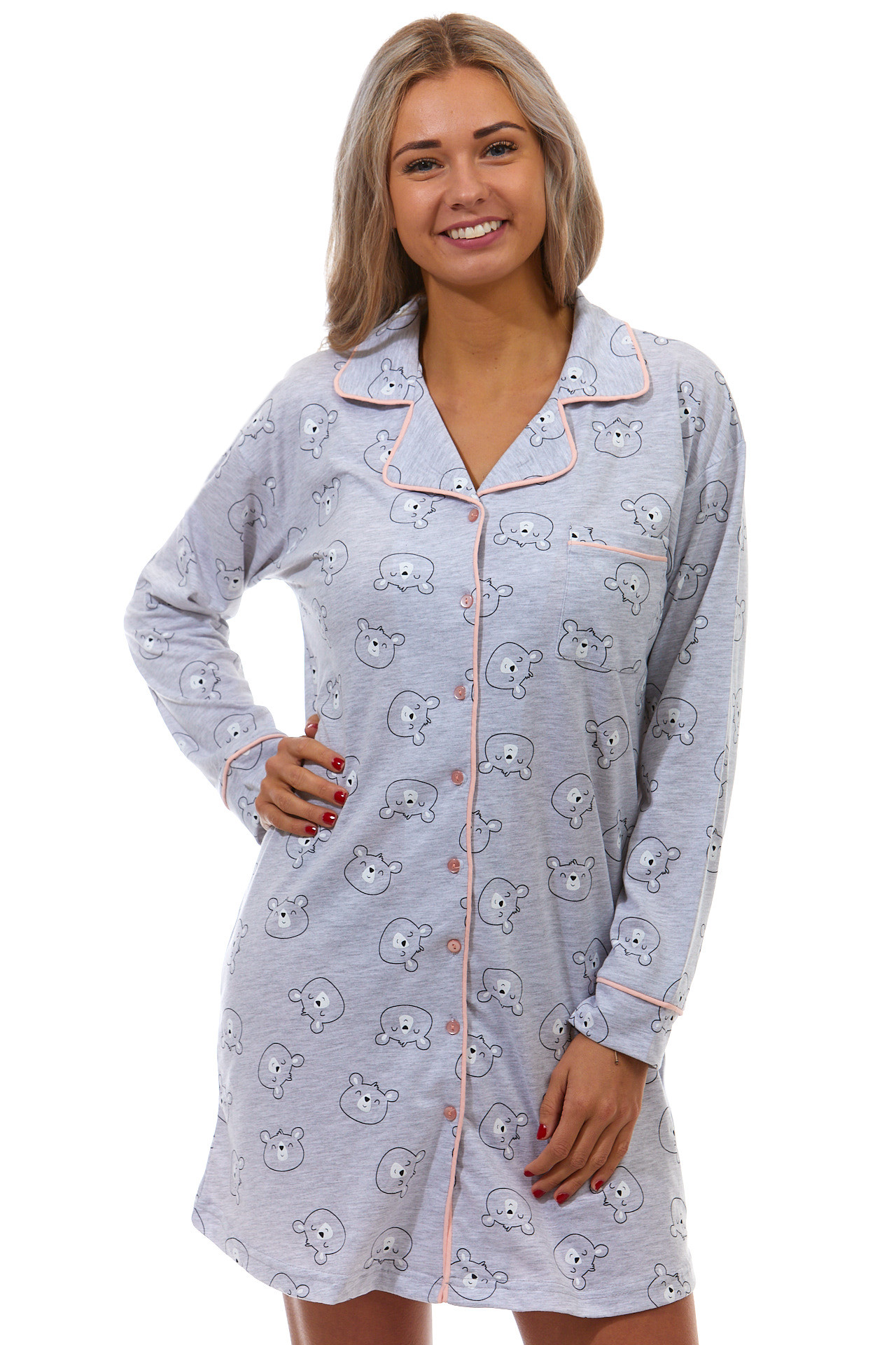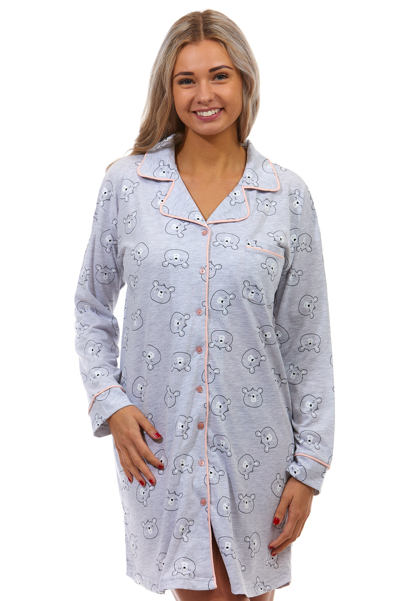 Šedá i růžově lemovaná elegantní košilka, pro kojící celopropínací s medvídky 1C3464