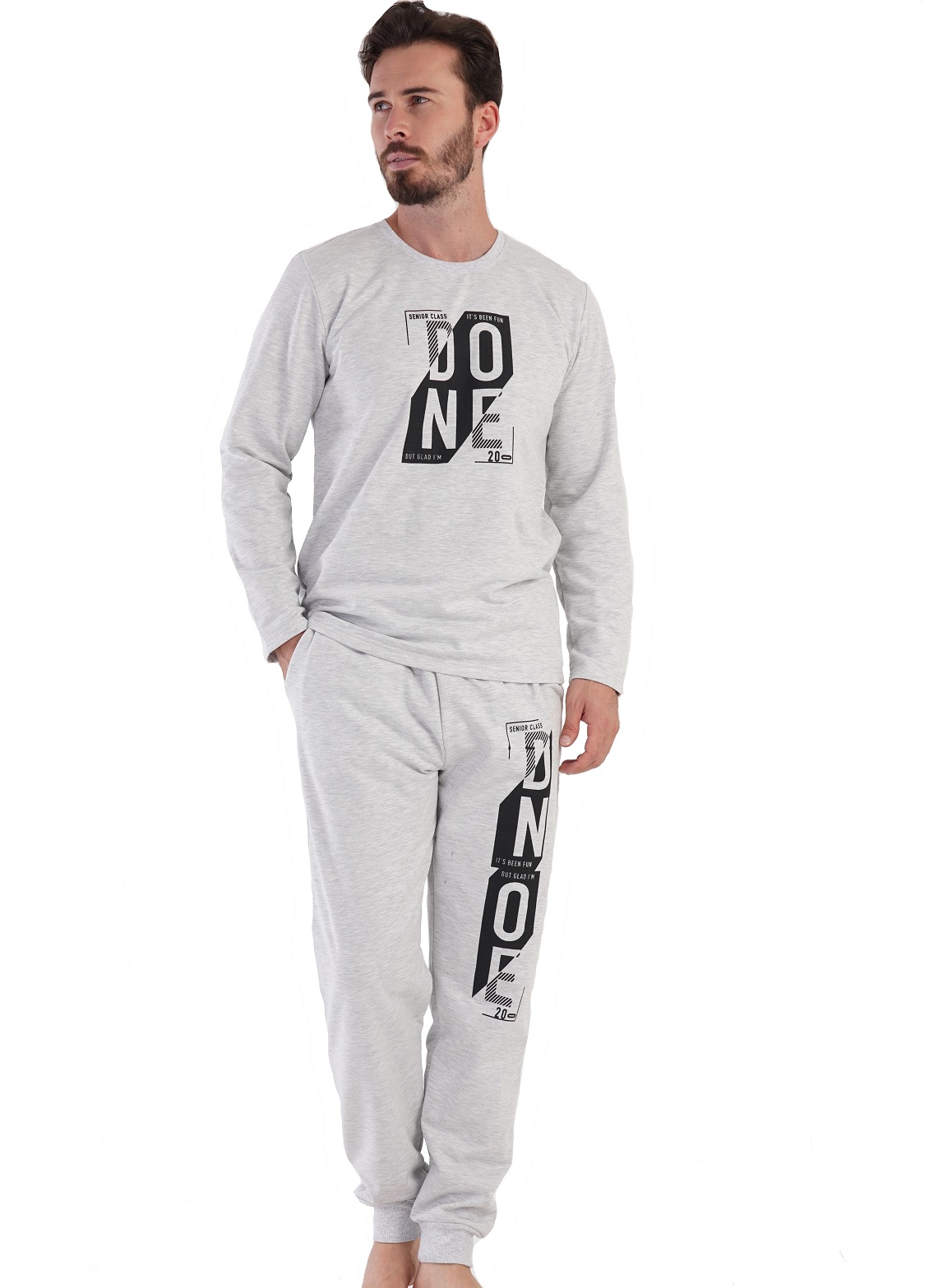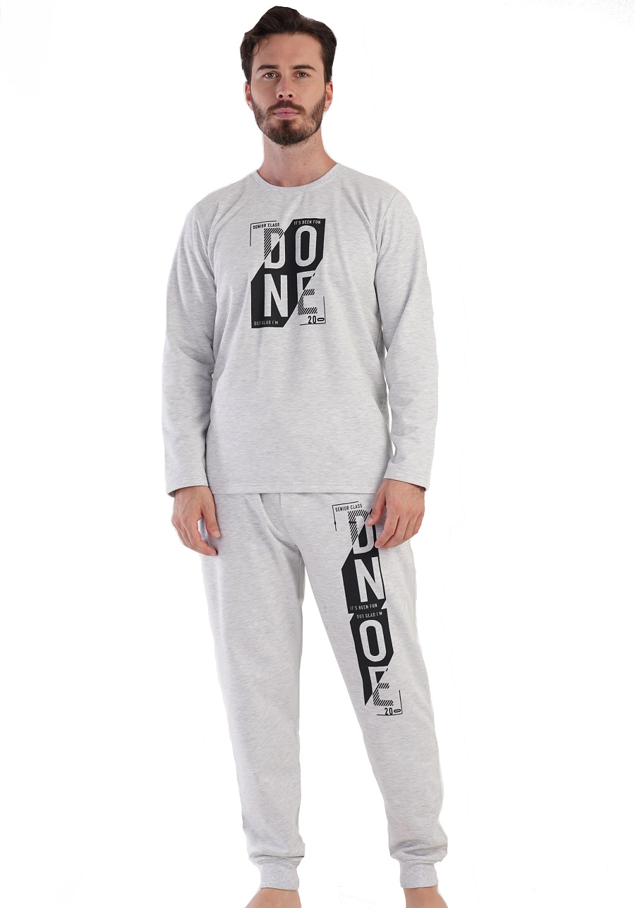 Šedé hřejivé pánské pyžamo z bavlny DONE