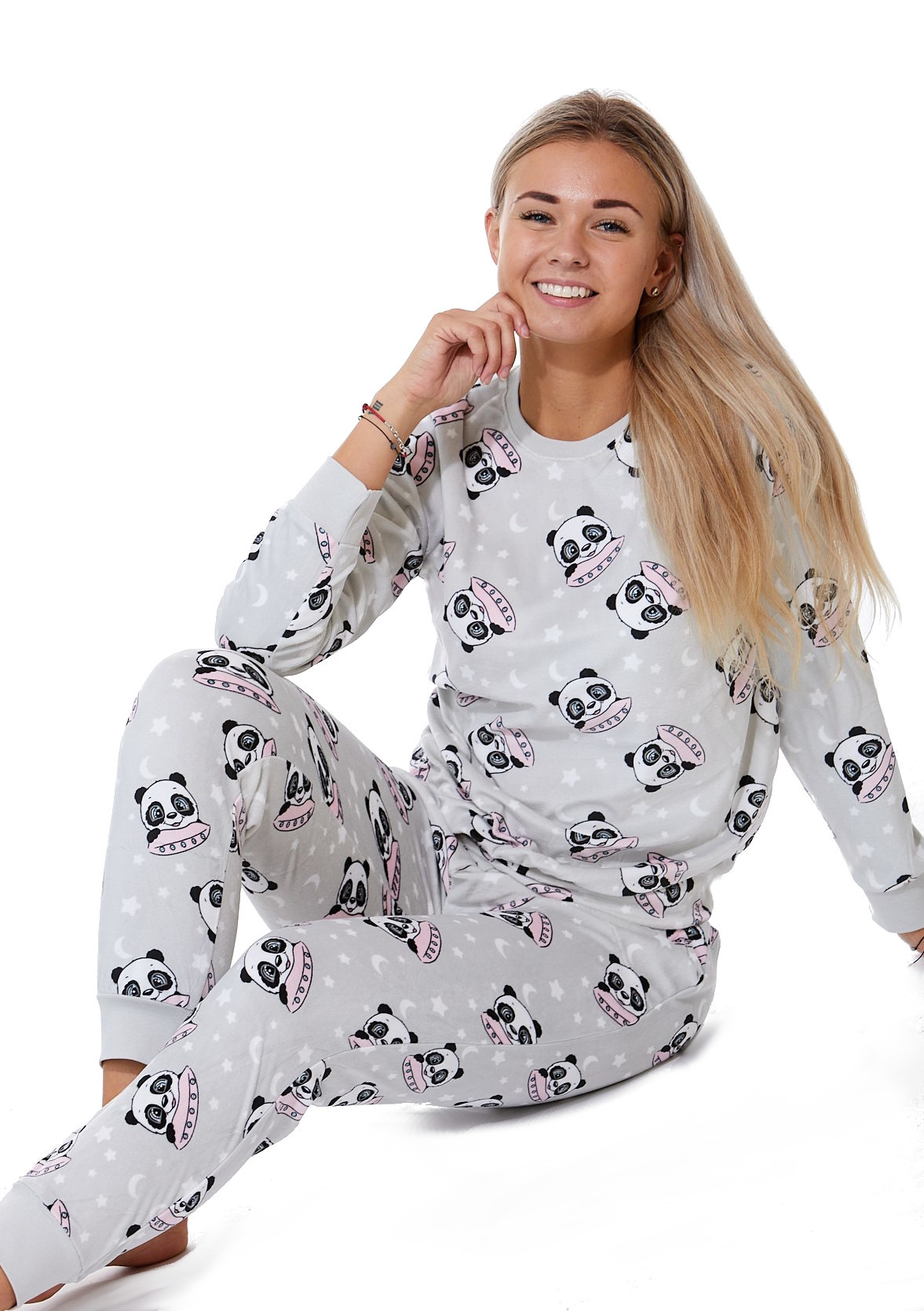 Šedé hřejivé pyžamo pro ženy či dívky na zimu s medvídkem Pandou