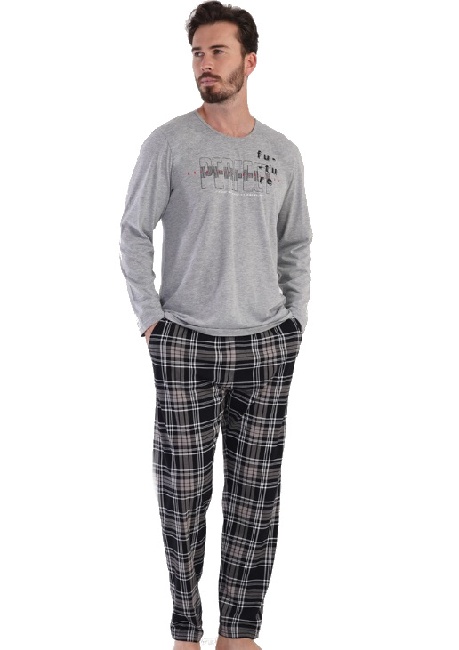 Šedé i černošedě kárované pyžamo pro plnoštíhlé muže PERFECT 1P1551