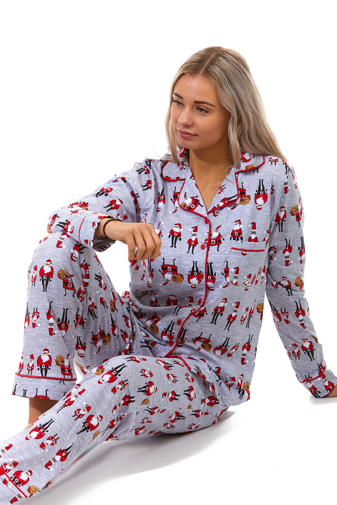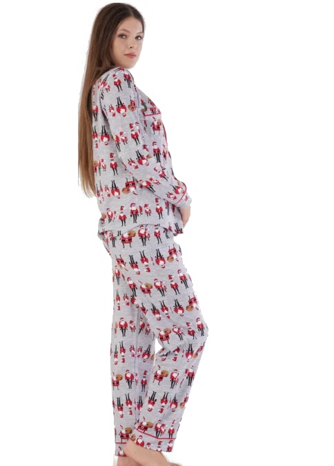 Šedé i červené pyžamo dámské celopropínací Vánoční - I Santa Claus může být jiný :)
