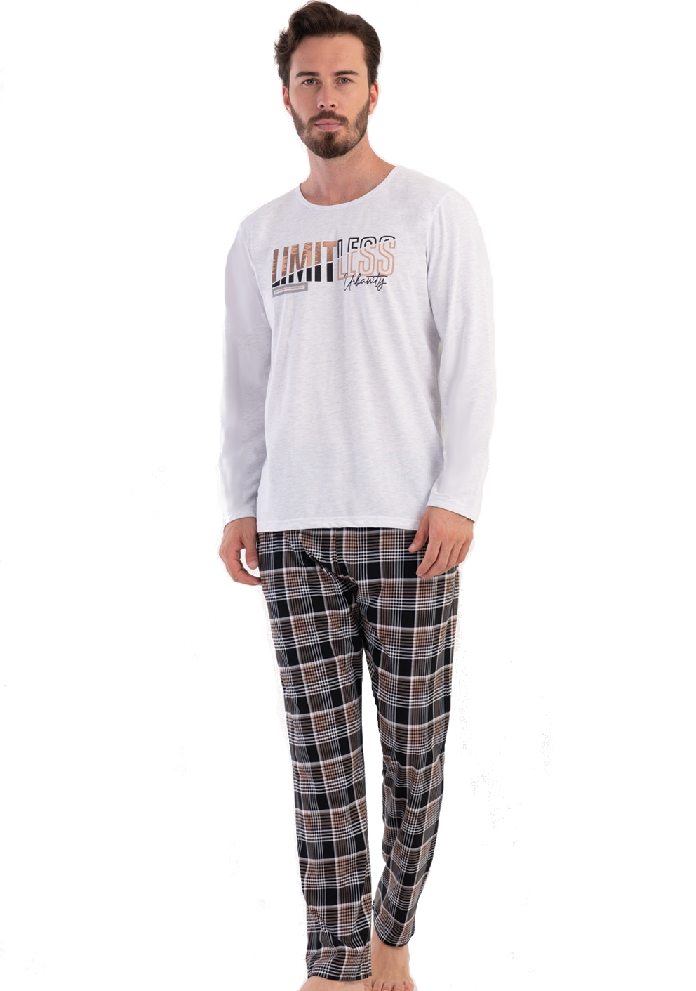Šedé i hnědé kárované pyžamo pro muže LIMIT LESS