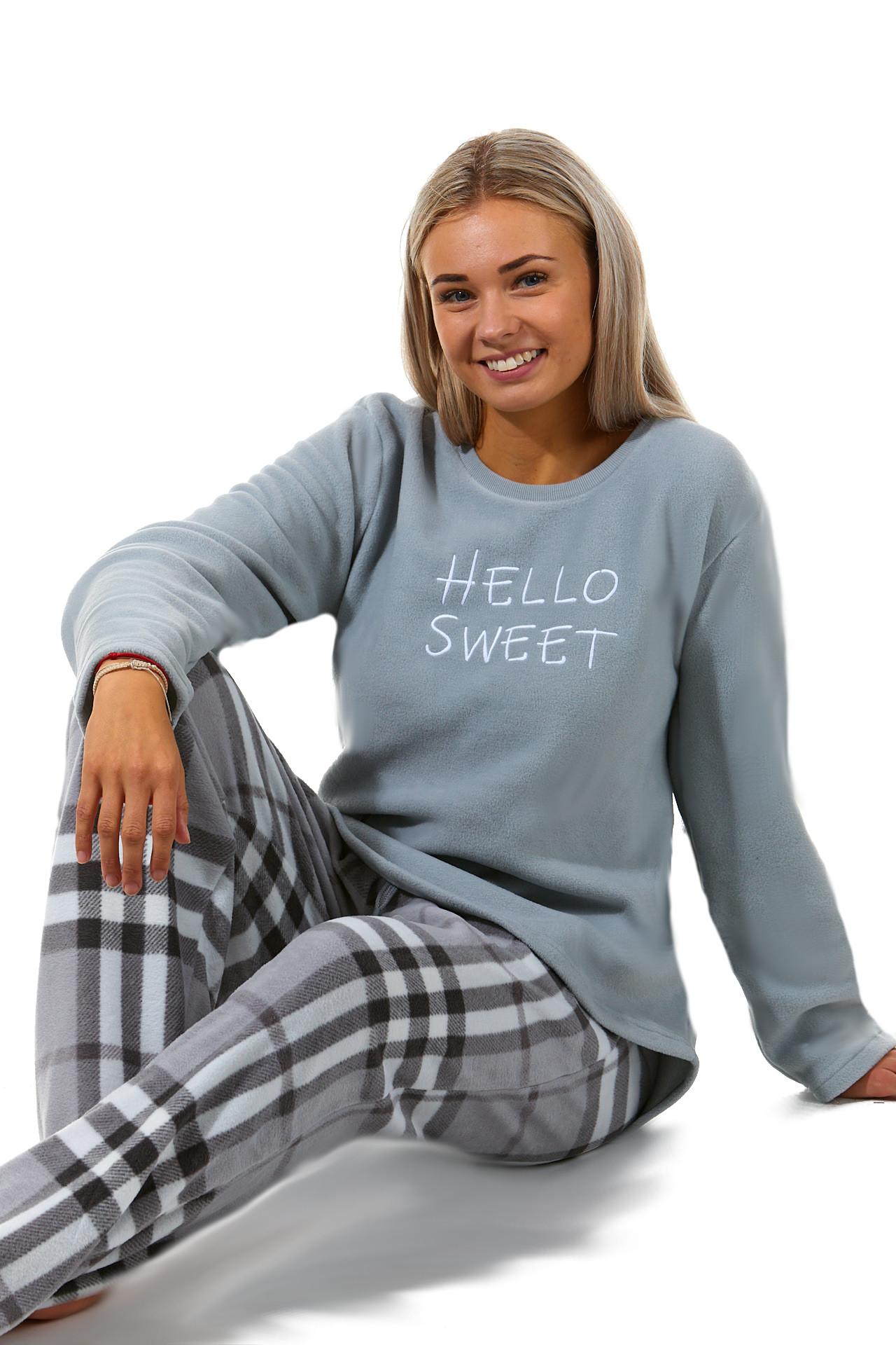 Šedé kárované luxusní hřejivé pyžamo pro plnoštíhlou ženu HELLO SWEET