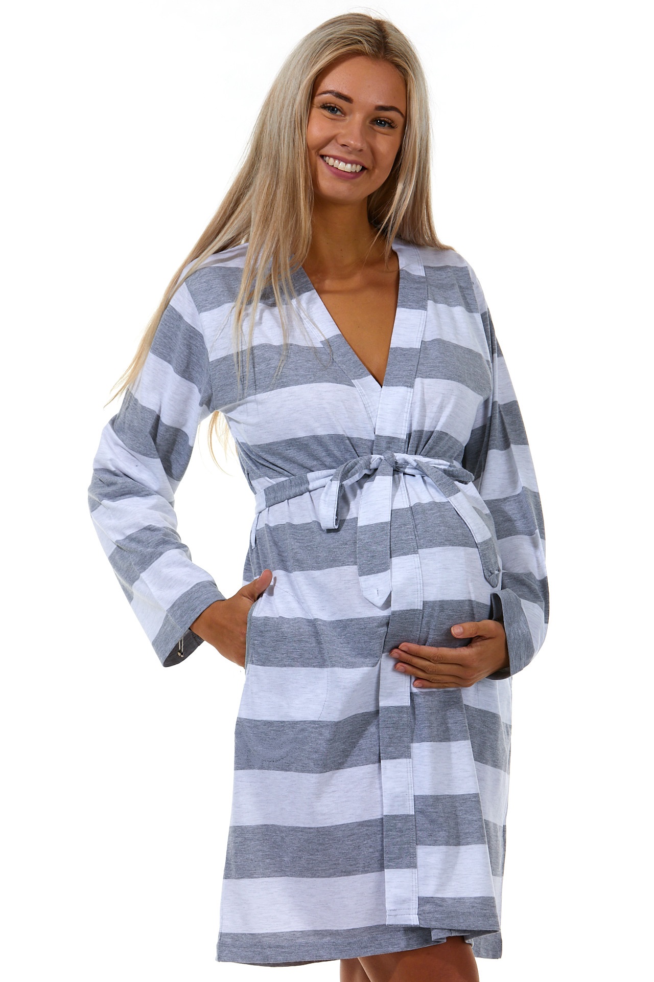 Šedý pruhovaný lehký župan do porodnice na kojení