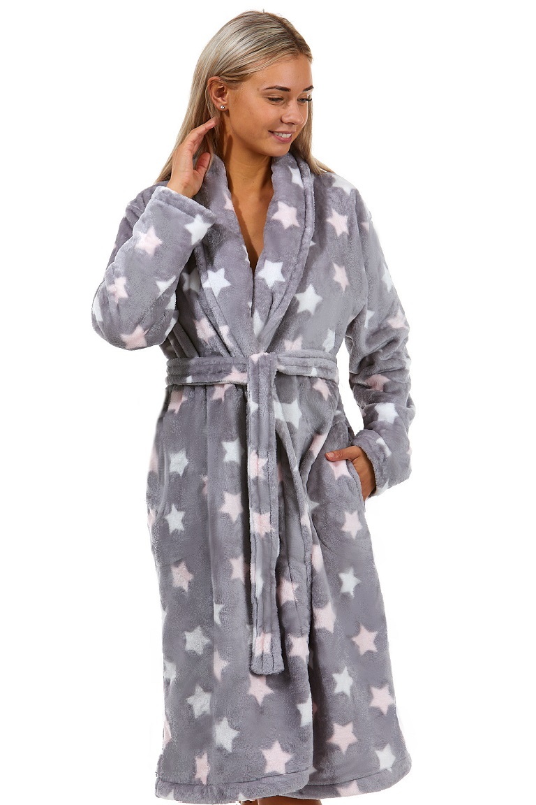 Šedý puntíkatý huňatý župan pro plnoštíhlé ženy, big
