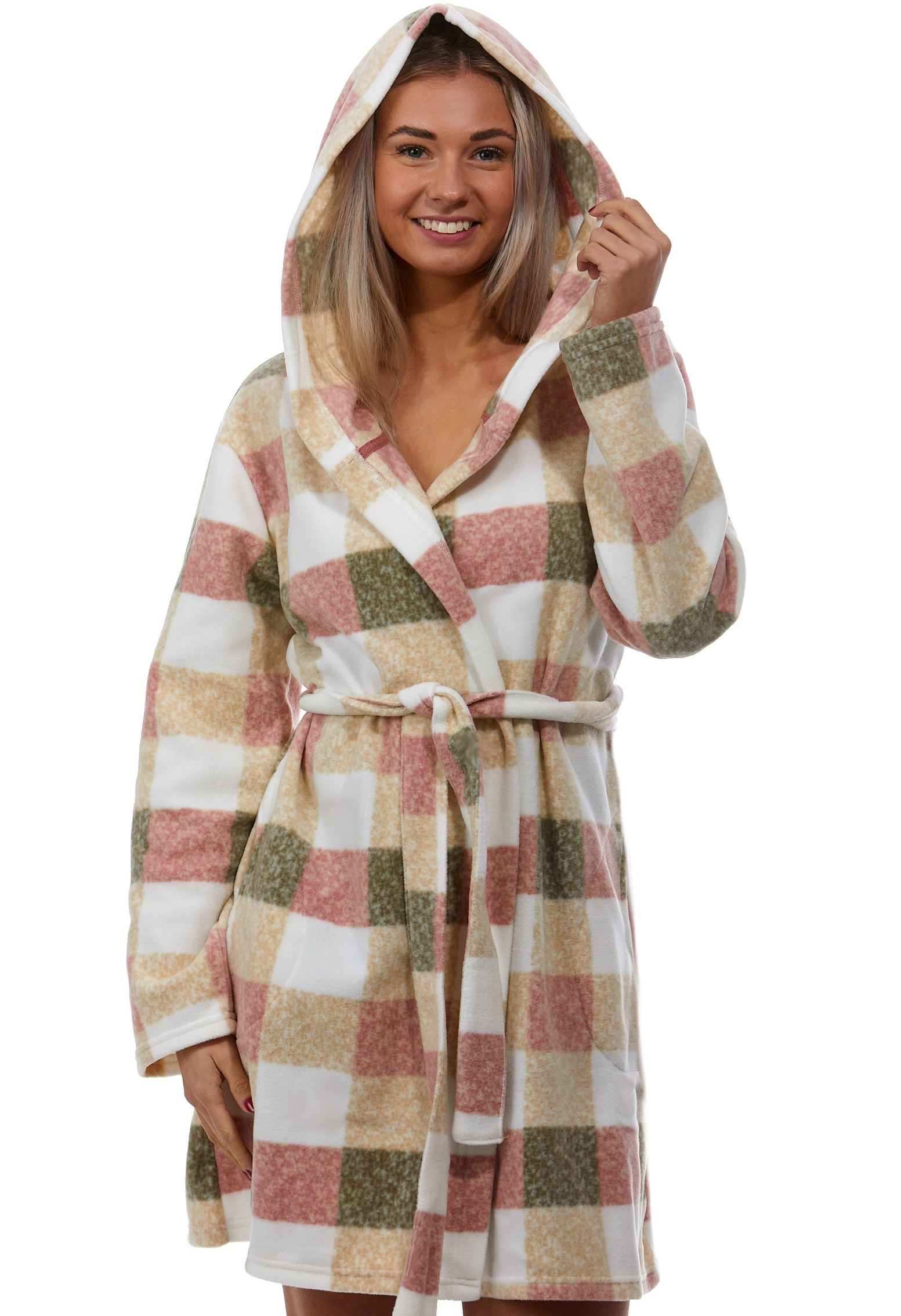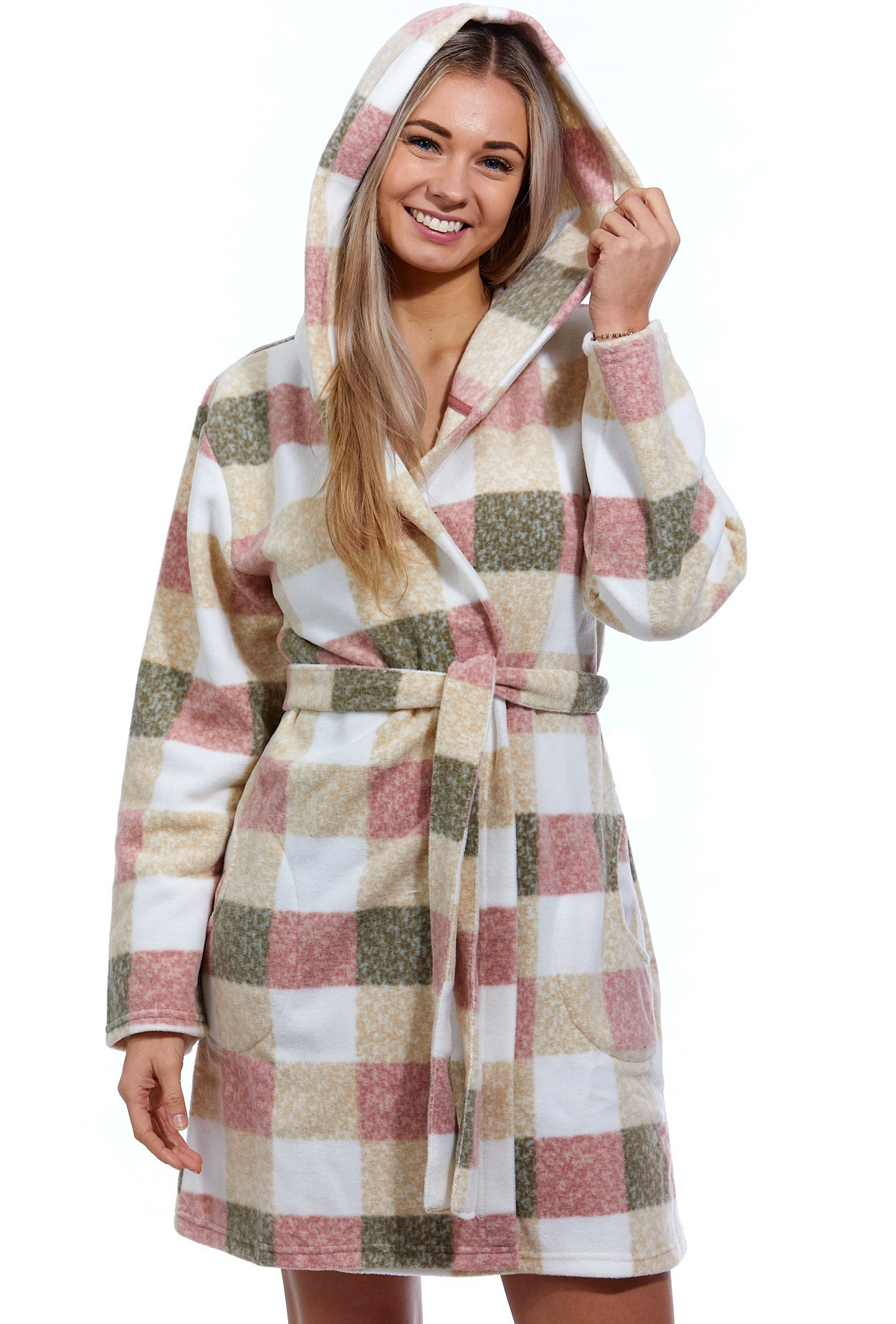 Starorůžový, khaki i béžový kostkovaný teploučký župan na kojení