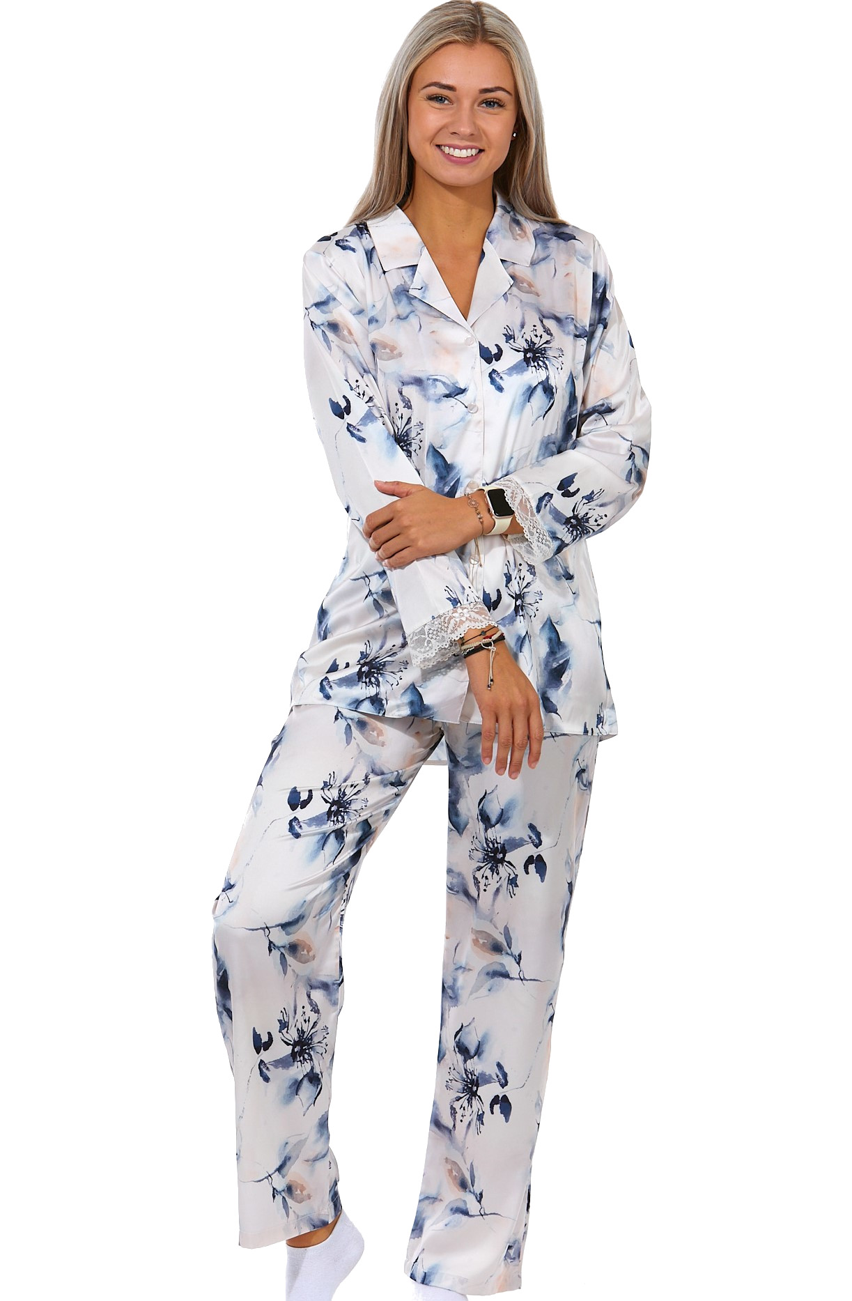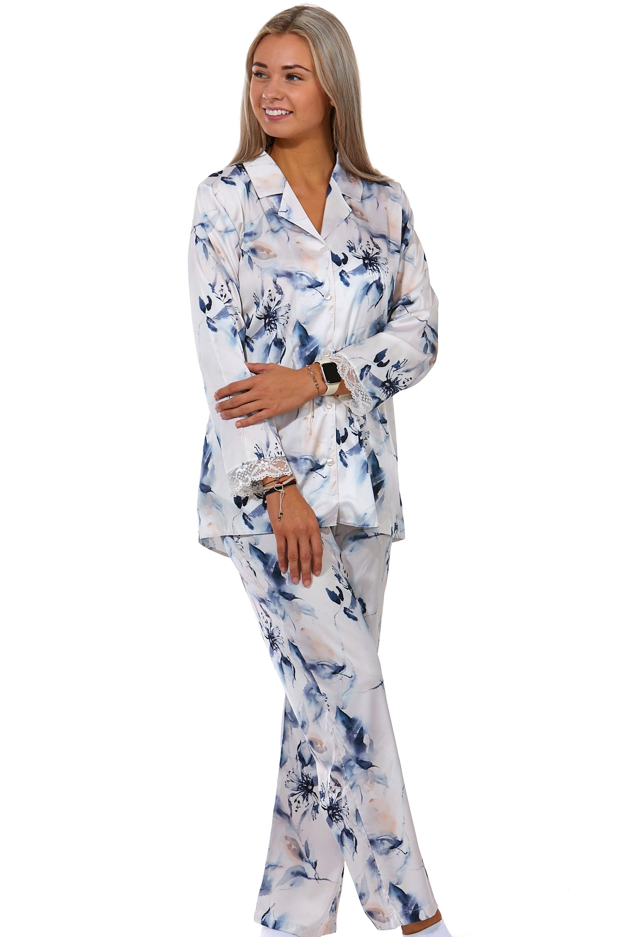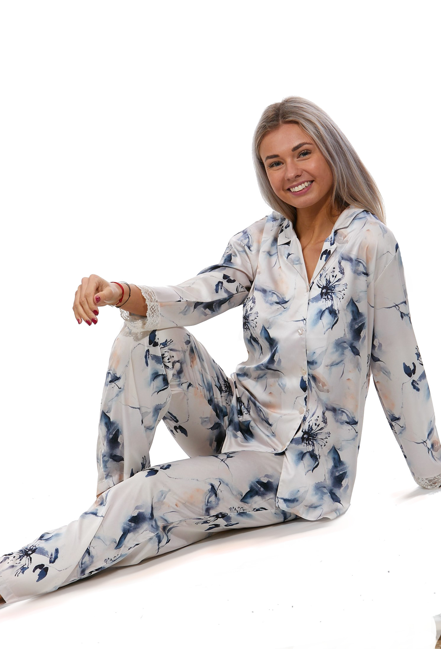Pyžamo dámské z dlouhými rukávy a kalhot dlouhé délky