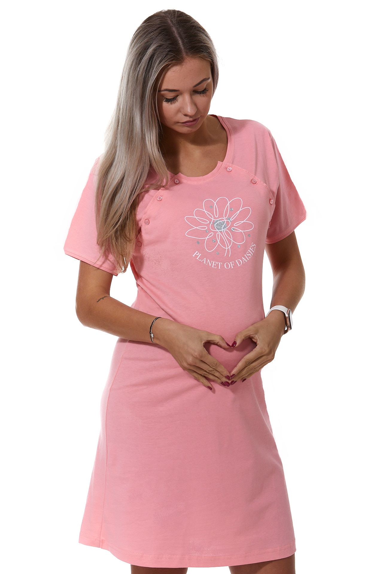 Kojící košilka má dvojité propínaní na kojení miminka a zdobí ji krásný květ