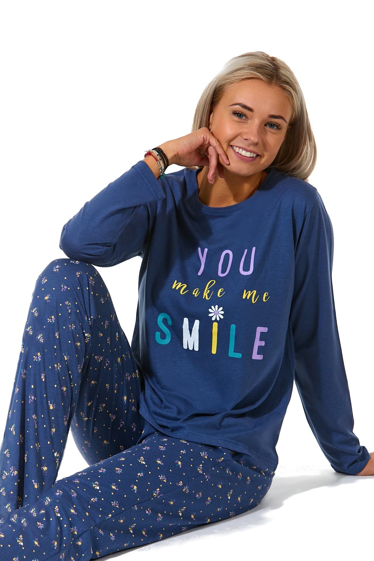Tmavě modré květinové dámské pyžamo - vytváříš mi úsměv